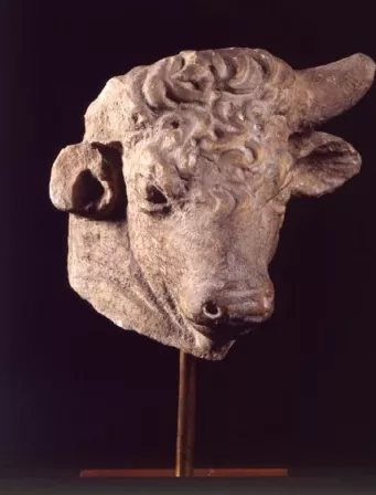 Statue d'une tête de taureau