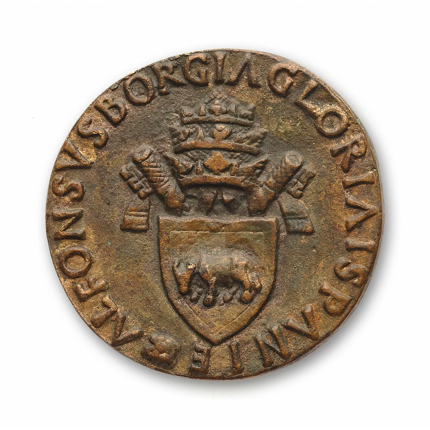 Buste de Calixte III à gauche, avec mitre et étole décorée d'arabesques