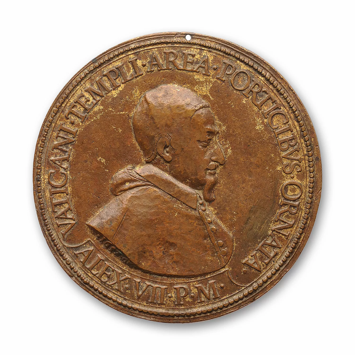 Dans un cartouche : ALEX. VII. P. M. - VATICANI. TEMPLI. AREA. PORTICIBVS. ORNATA.