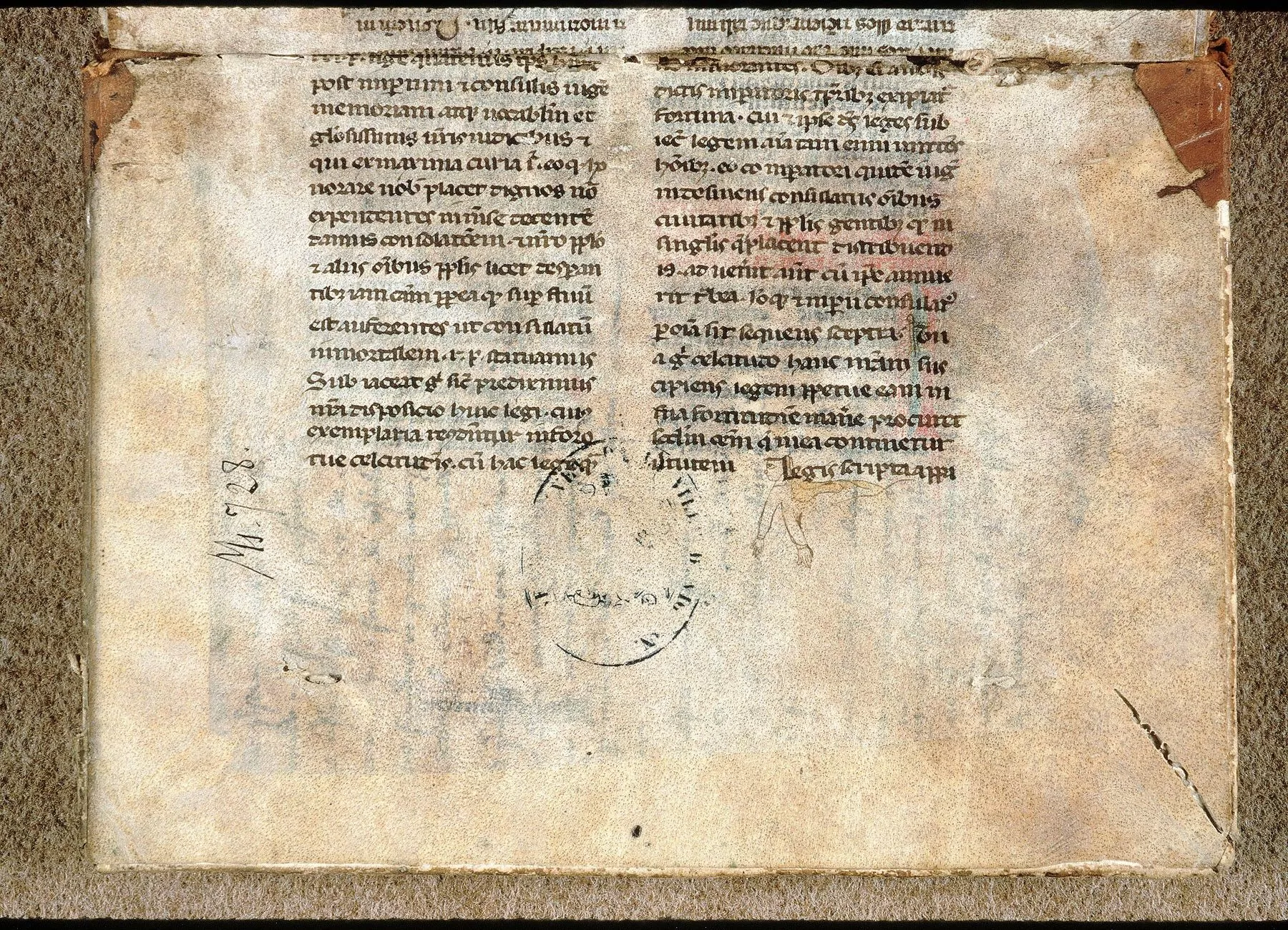 Commentaires de Labande. XVe siècle. Papier. 59 feuillets. 222 sur 157 millim. Rel. Peau chamoisée et basane, avec restes de fermoir en cuivre. (Célestins d'Avignon, 3 A 64.)