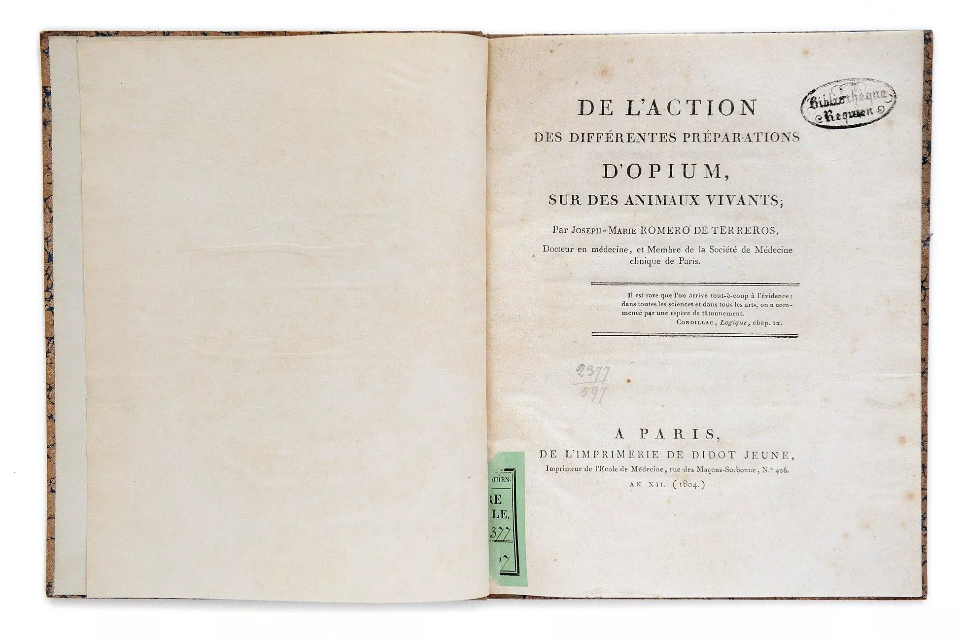 De l'action des différentes préparations d'Opium, sur des animaux vivants