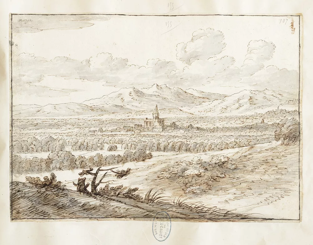 plume, encre brune, lavis brun sur papier