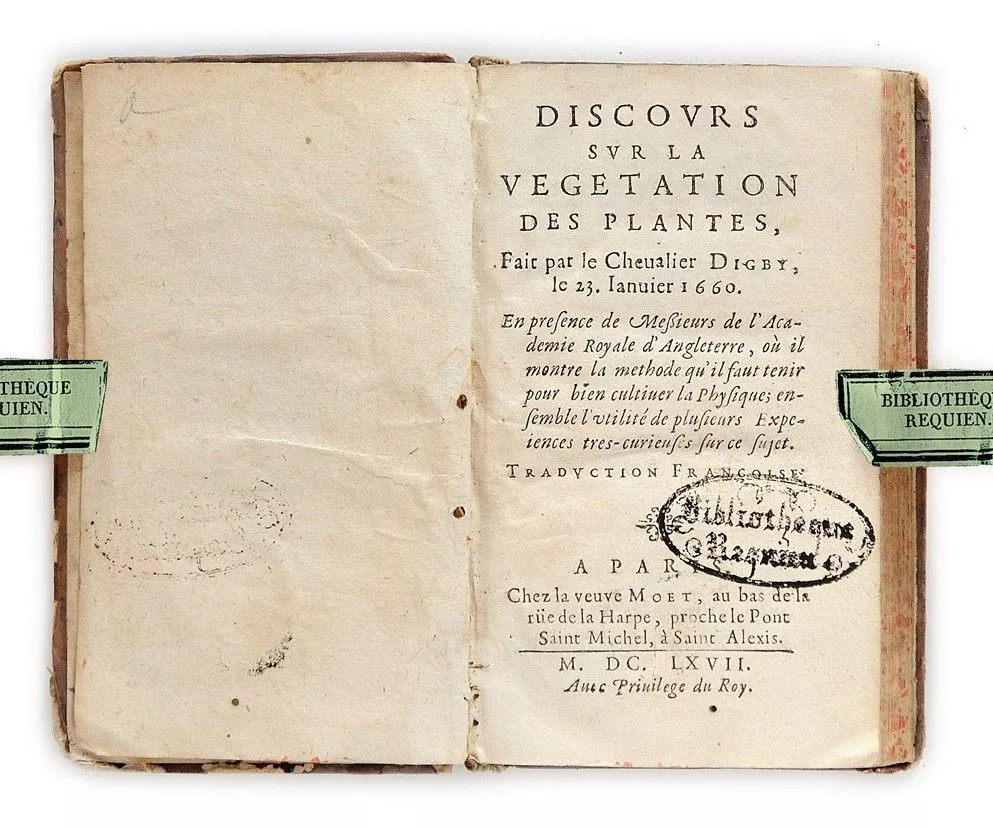 Titre complet : Discours sur la végétation des plantes fait par le chevalier Digby le 23 janvier 1660.