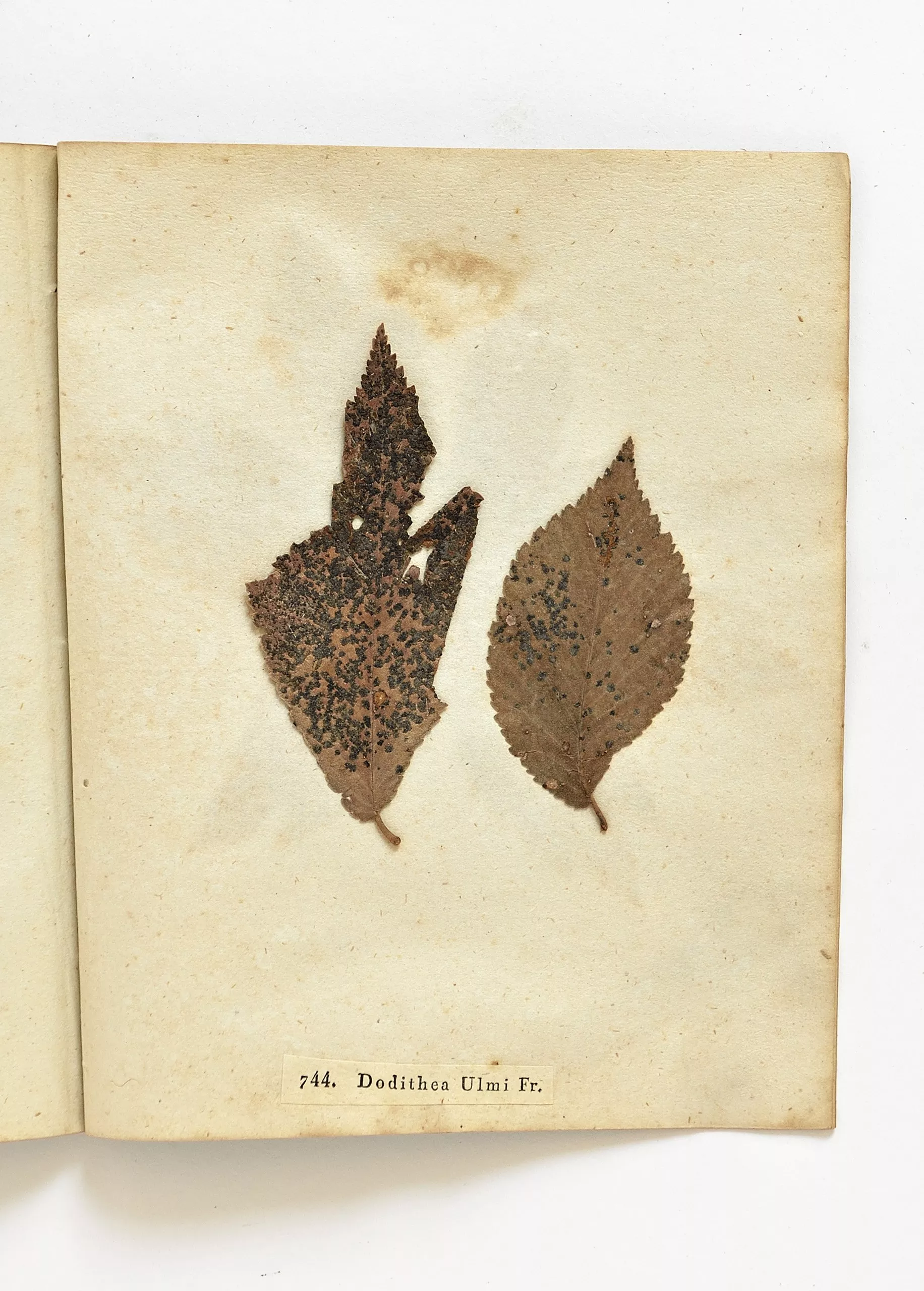 Les tâches noires présentes sur ces feuilles d'orme sont des champignons nuisibles, responsables de la maladie de l'orme. Identifiée en 1929, ces champignons se caractérisent par des taches jaunes de 1 millimètre de diamètre et un centre noir, s'assombrissant et grandissant avec le temps, jusqu'à 5 millimètres de diamètre. Cela provoque la chute prématurée des feuilles, l'infection des fruits et dans de rares cas, la mort de l'arbre.