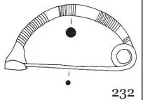 L’arc est cintré et décoré de lignes transversales incisées formant 4panneaux. 18 lignes transversales pour le panneau n° 1 ; dix lignes transversales pour le panneau n° 2 ; treize lignes transversales sur le panneau n° 3 et trois lignes sur le panneau n° 4. Le décor est composé de dix huit lignes ; porte-ardillon court ; ressort composé d’une spirale.