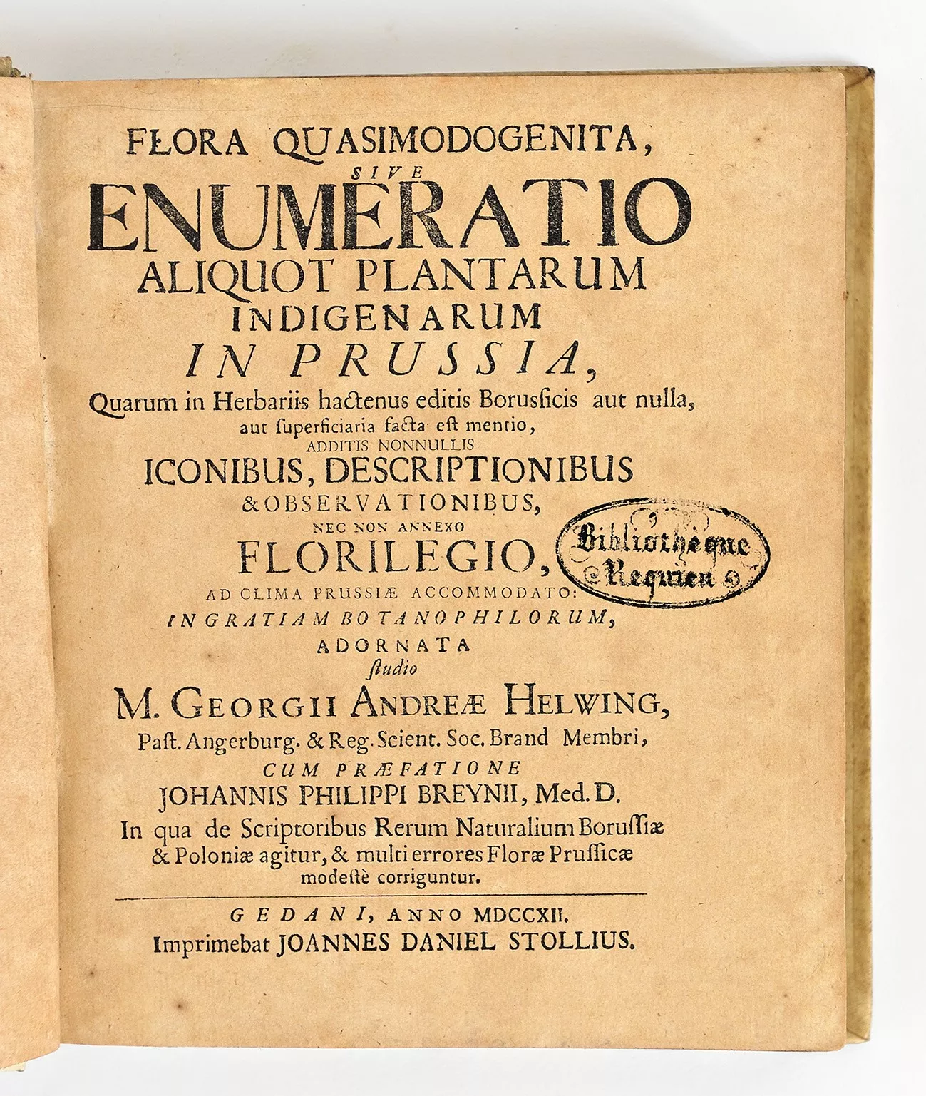Titre complet : Flora quasimodogenita, sive Enumeratio aliquot plantarum indigenarum in Prussia, quarum in herbariis hactenus editis borussicis aut nulla aut superficiara facta est mentio, additis nonnullis iconibus... et observationibus, nec non annexo Florilegio ad cli