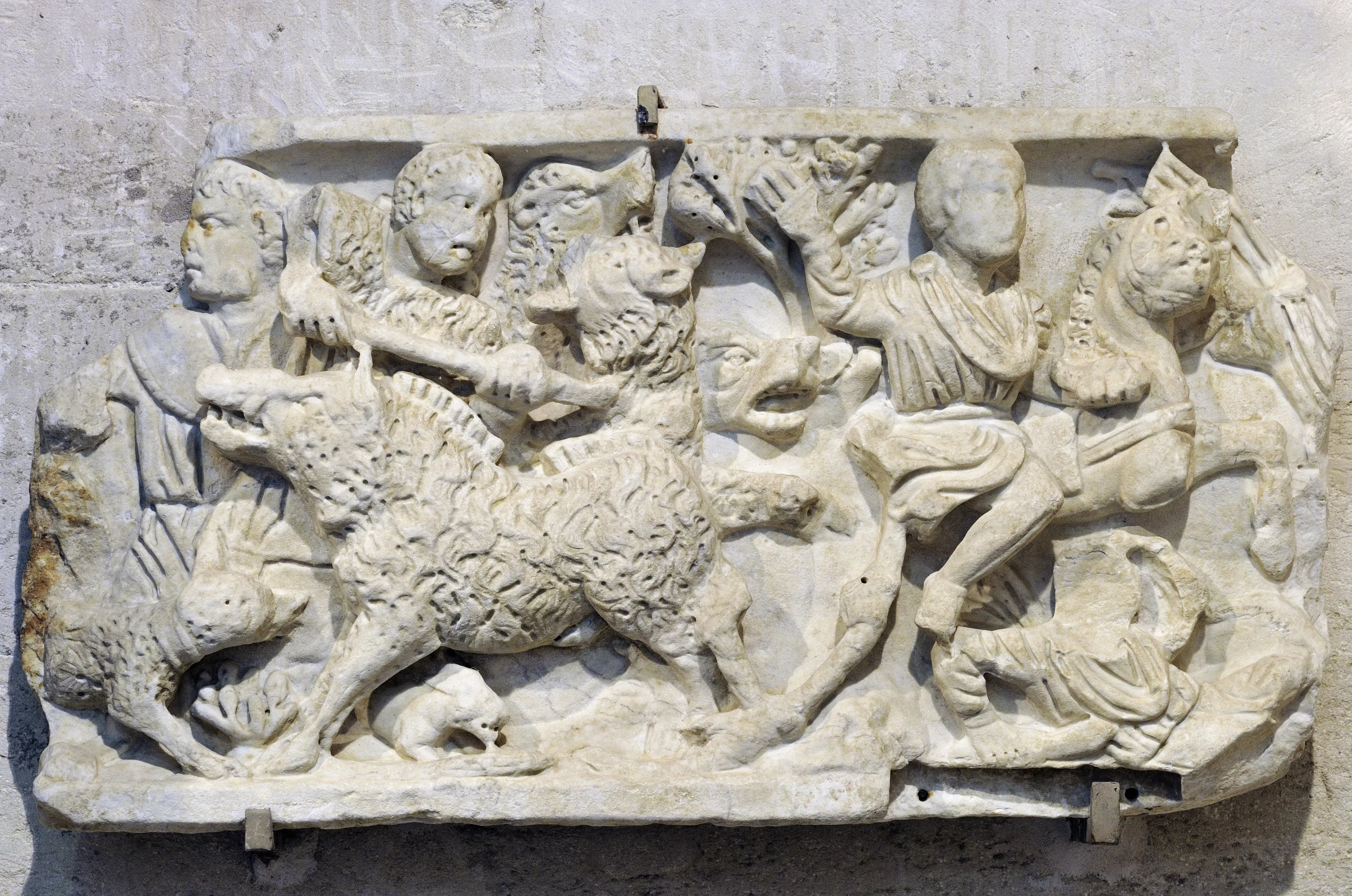 /sites/default/files/images_oeuvres/2023-03/420913105661491042.jpg Objets funéraires romainsAntiquités romainesArchéologie Fragment de sarcophage - Scène de chasse aux sangliers Sculpture funéraire gallo-romaine Données spécifiques Numéro d'inventaireC2Musée d'accueilMusée Lapidaire À découvrir aussi . Fragment de sarcophage scène mythologiqueEpoque impériale . Epitaphe de Saeculasia24 février, 2 ou 10 mars 531 . Urne anépigraphe avec des têtes d'AmonOeuvre romaine, époque impériale . Fragment de sarcophage avec la légende de PhèdreAtelier attique Epoque Impériale X