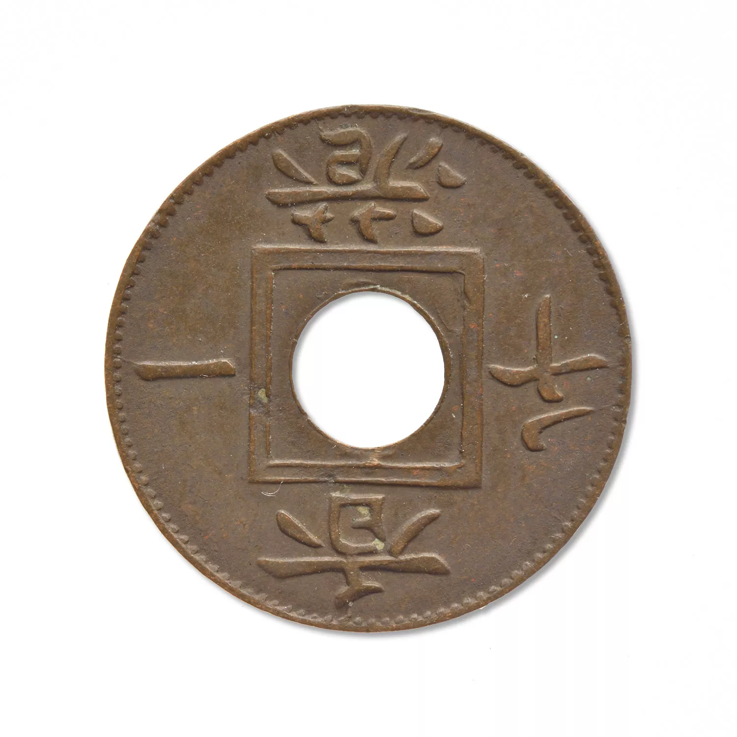 Don du 18 septembre 1876 (registre H9, p. 188 et PV séance du CA du 28 octobre 1876), parmi un lot de 15 monnaies et médailles : "petite monnaie frappée par les Anglais en 1866 à Hong-Kong pour l'usage du pays".