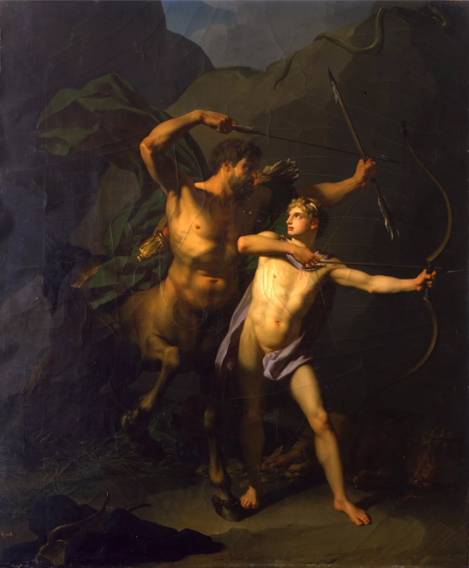 L’éducation d'Achille est un thème assez peu fréquent dans la peinture. Son père le confie au centaure Chiron pour lui faire donner une éducation à la fois littéraire et sportive