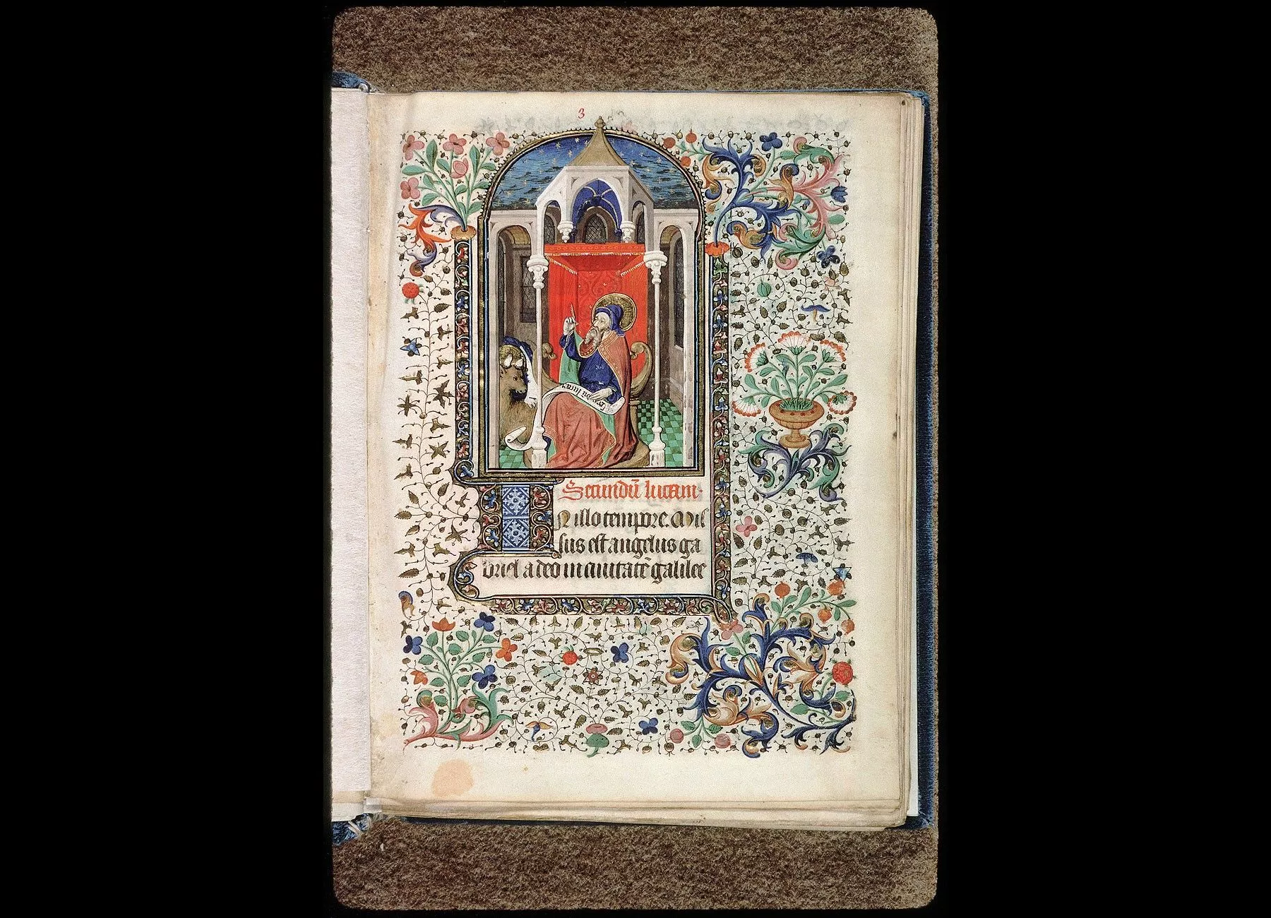 Fol. 1. Les quatre évangiles ordinaires des livres d'heures : " Initium sancti euvangelii secundum Johannem "