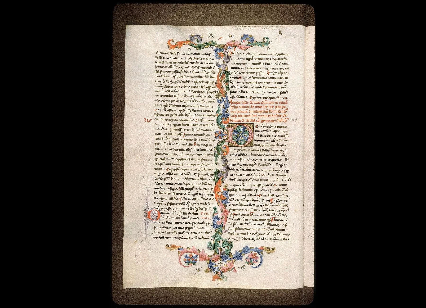 Fol. 5. " Incipit liber de vita Jhesu Cristi in euvangelio tradita.Et continet hec pars prima historiam euvangelicam ab incarnatione usque ad annum Domini XXXIII exclusive. De divina et eterna Christi generatione, capitulum primum. De plenitudine itaque euvangelii quasdam guttas haurire cupientes... "