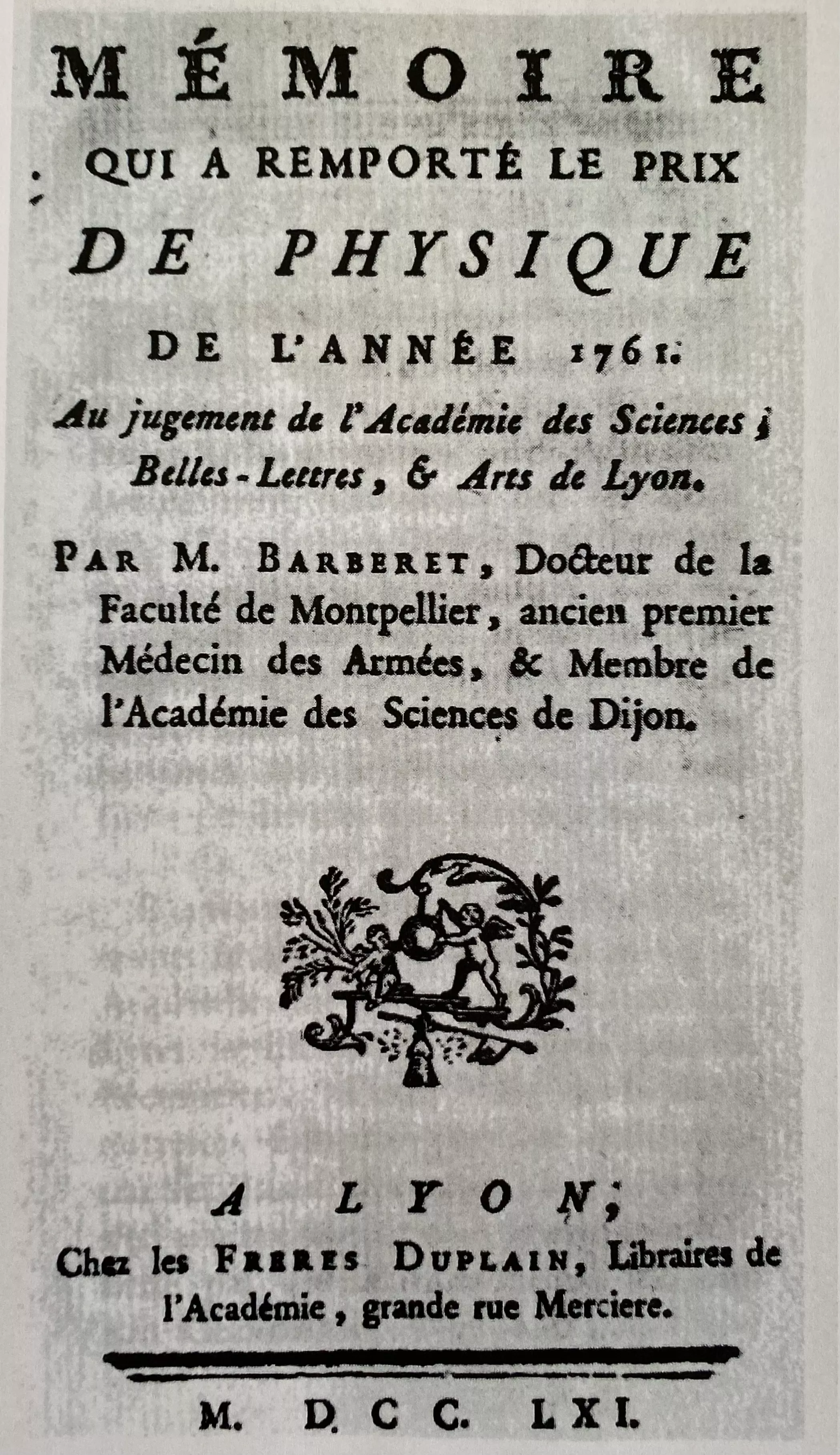 /sites/default/files/images_oeuvres/2023-04/memoire-de-physique.jpg Livres et documents Mémoire de physique 1761 Mémoire qui a remporté le prix de physique de l'année 1761Par M. BARBERETA LYON Présentation de l'œuvre Date1761Données spécifiques Musée d'accueilBibliothèque Calvet À découvrir aussi . Icones et descriptiones plantarumReichenbach, Ludwig (Heinrich Gottmieb Ludwig) . Flore médicaleChaumeton , François-Pierre1817 . Recueil . Cartulaire du prieuré de Montaut, fondé en 1340 par le cardinal Pierre Bertrand X