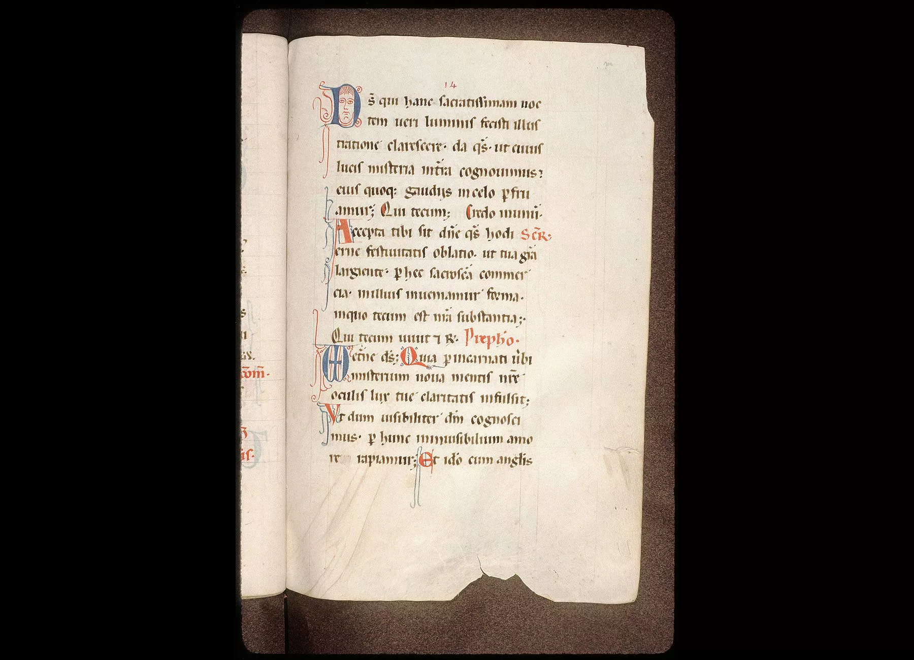 Fol. 1. Ancien feuillet de garde portant au recto les oraisons de la messe pour S. Edmond - au verso, diverses oraisons, dont une pour le pape Innocent (Innocent III ?), une autre pour le succès de la croisade. XIIIe siècle