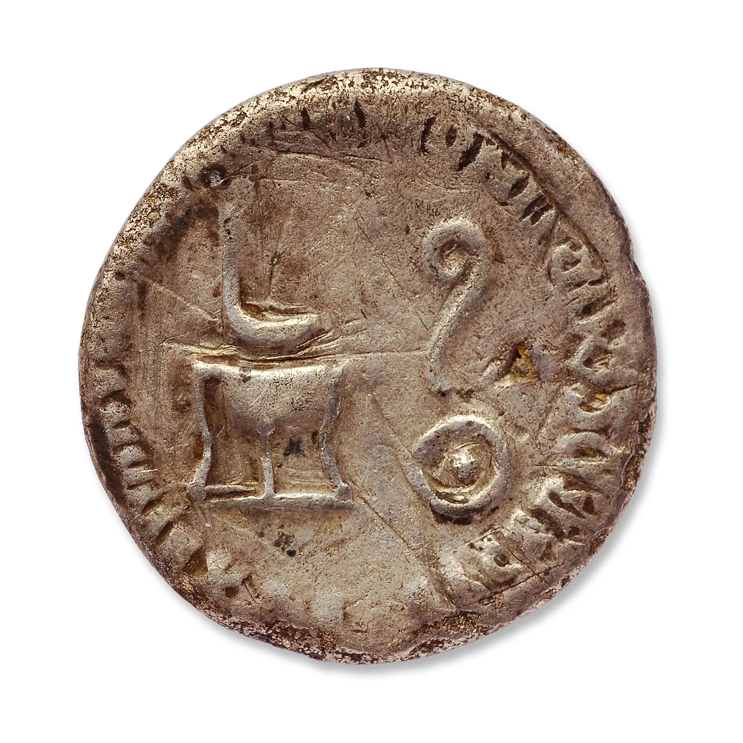Exemplaire usé, avec plusieurs rayures profondes au droit et au revers