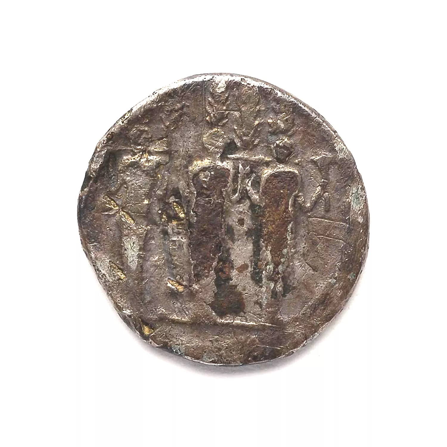 Triple statue de culte de Diane Nemerensis de face ; derrière, cyprès
