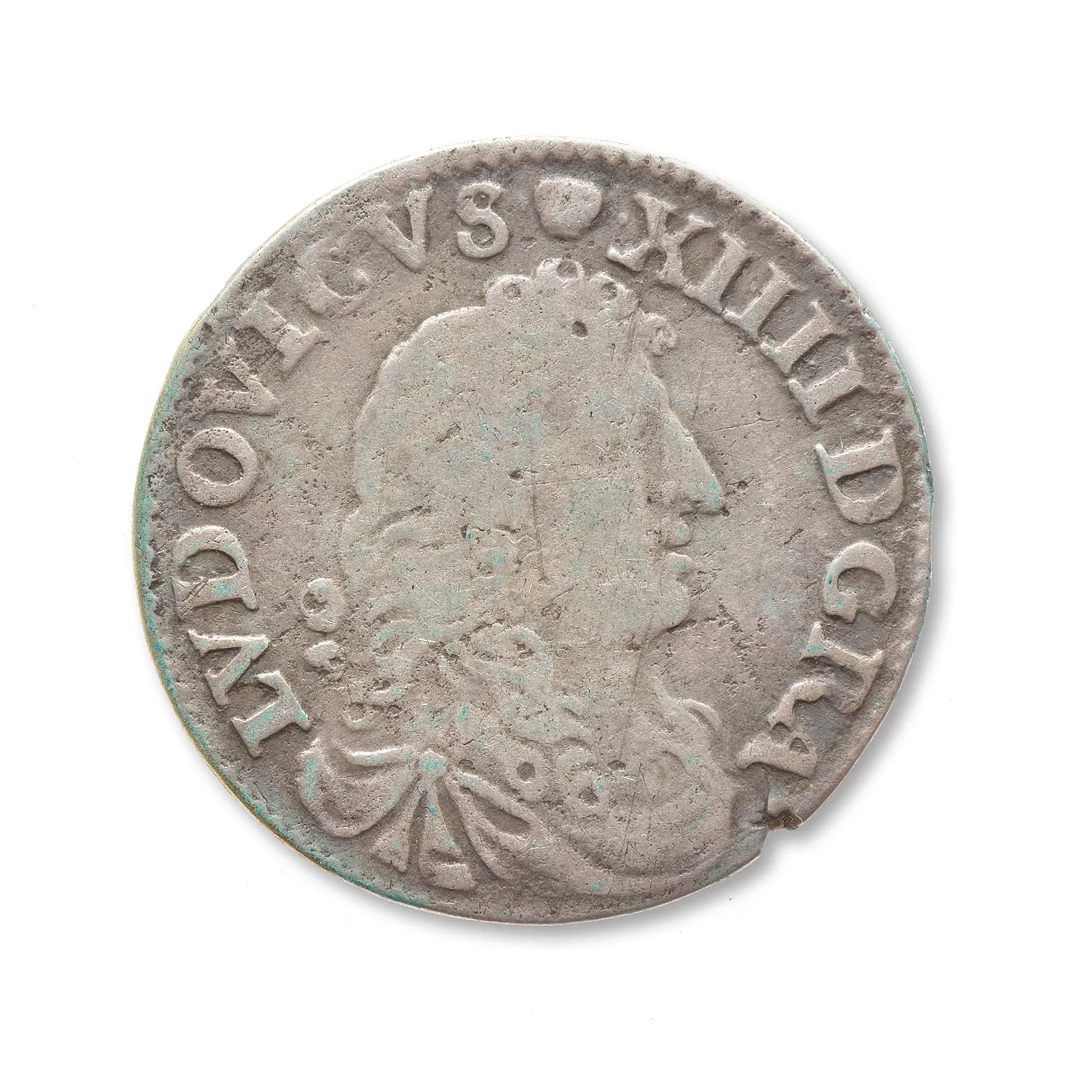 Cavalier à droite, brandissant une lance ; à gauche, chiffres de contrôle