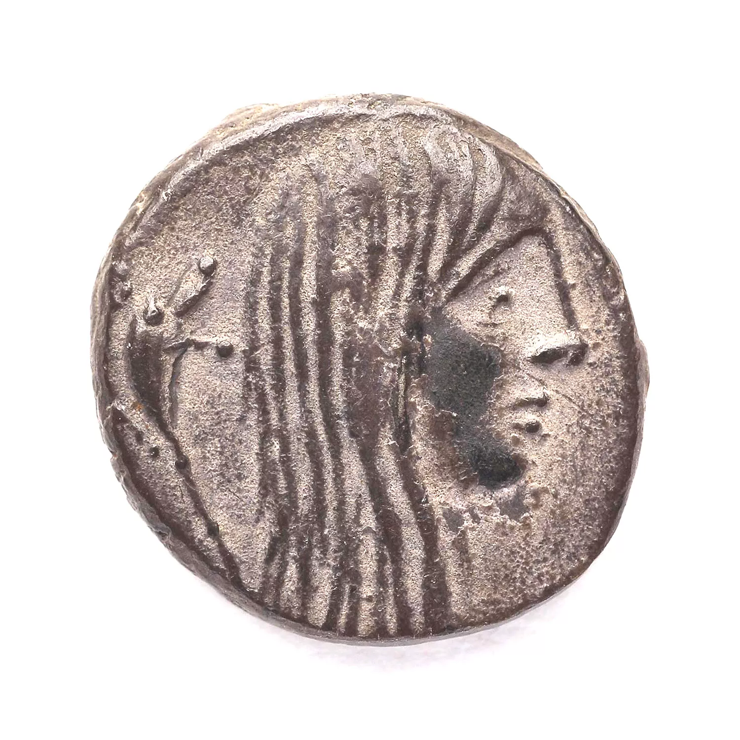 Tête de femme, avec des cheveux longs, à droite