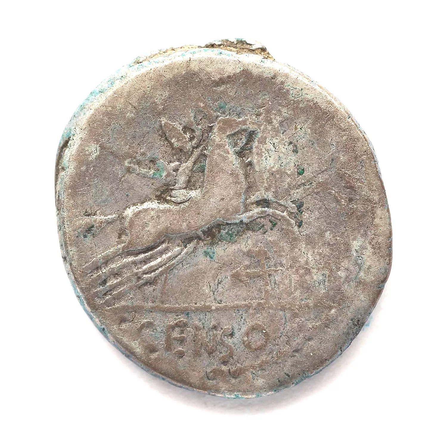 Desultor à droite, tenant un fouet ; dessous, symbole de contrôle