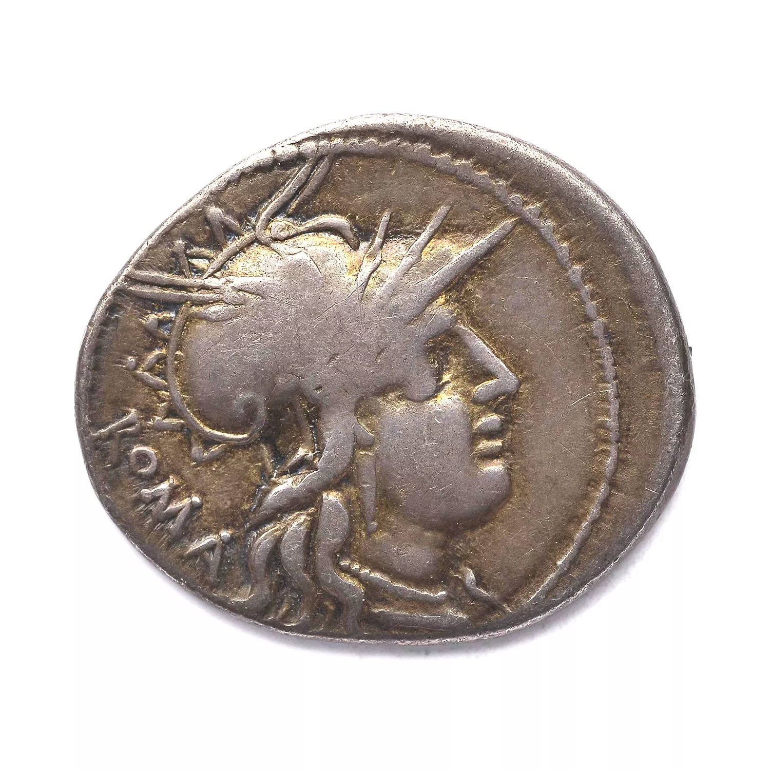 Tête casquée de Rome à droite