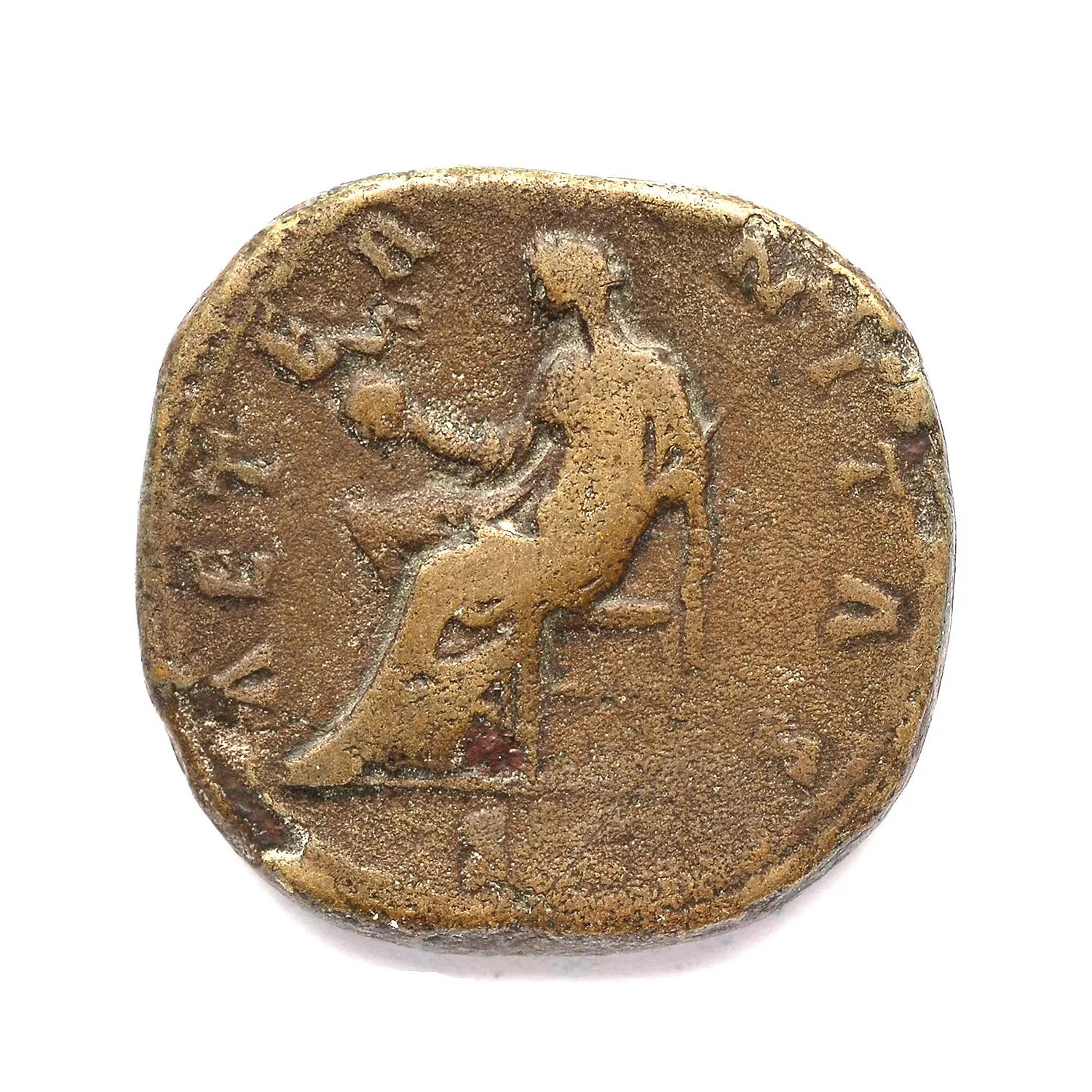 Aeternitas, voilée, assise à gauche, tenant un globe surmonté par un phoenix et un sceptre