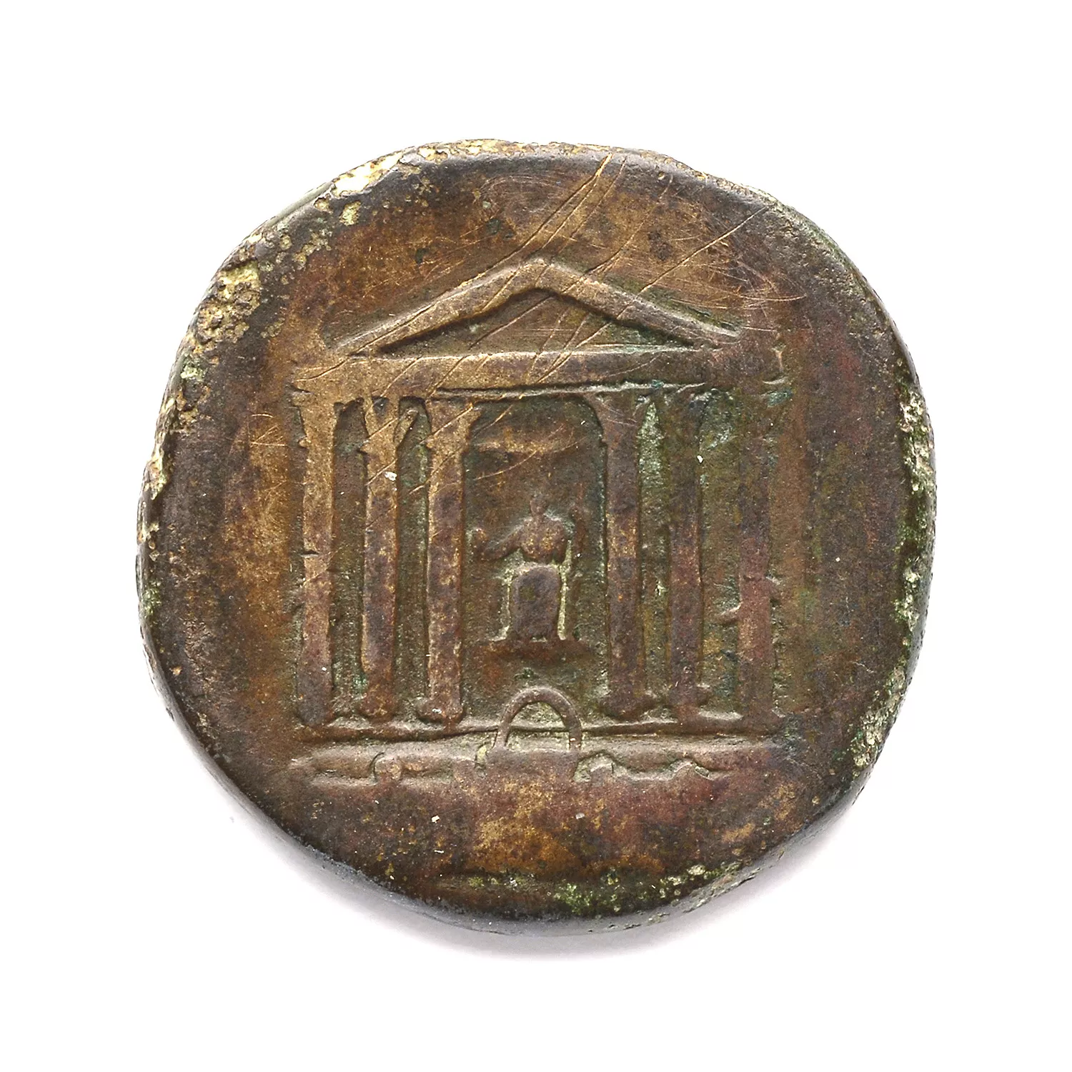 Temple hexastyle dans lequel se trouve une statue de Faustine I assise
