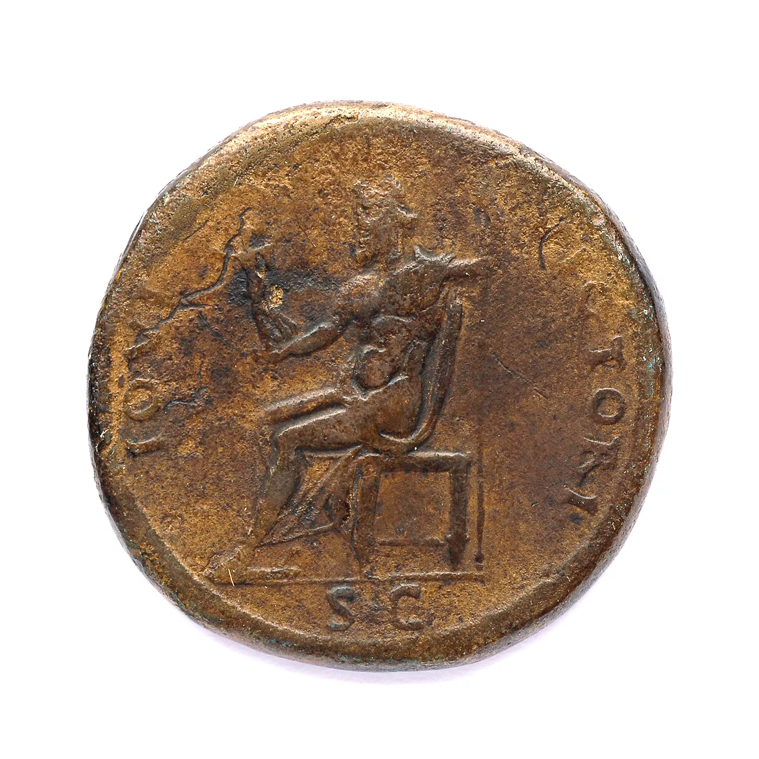 Jupiter assis à gauche, tenant une victoire et un sceptre