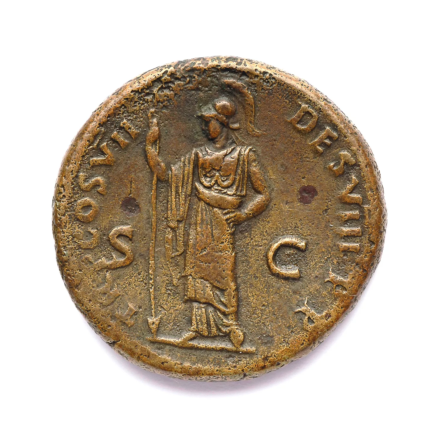 Minerve debout à gauche, tenant une lance