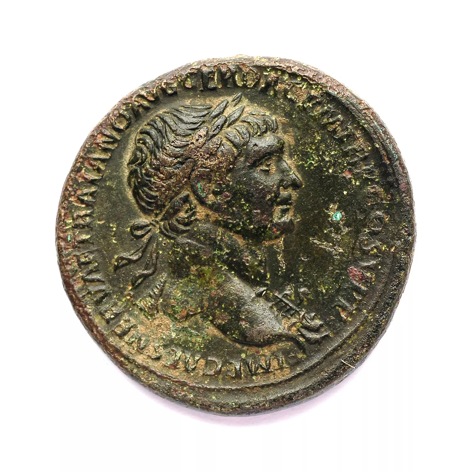 Buste de Trajan lauré à droite, avec l'aegis