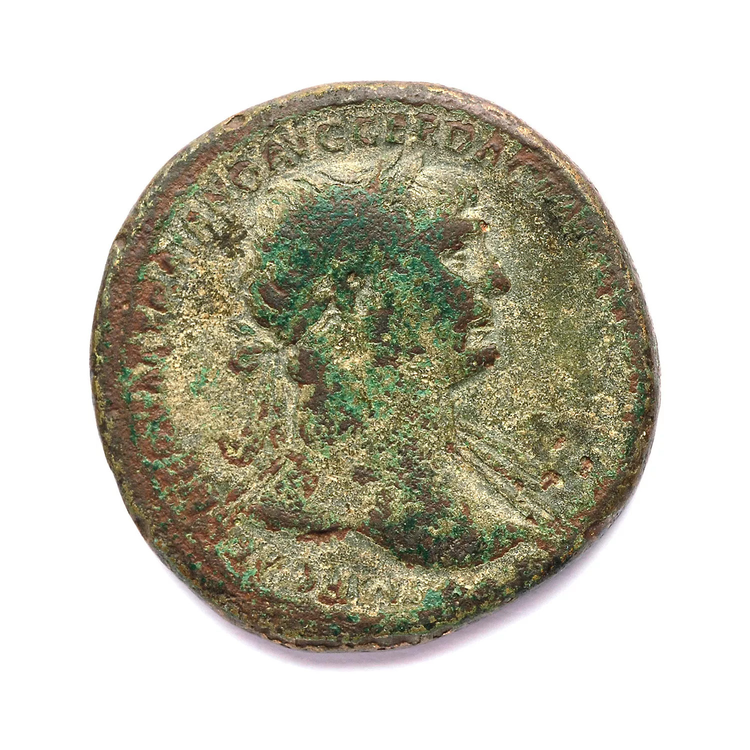 Buste de Trajan lauré à droite, draperie sur l'épaule gauche