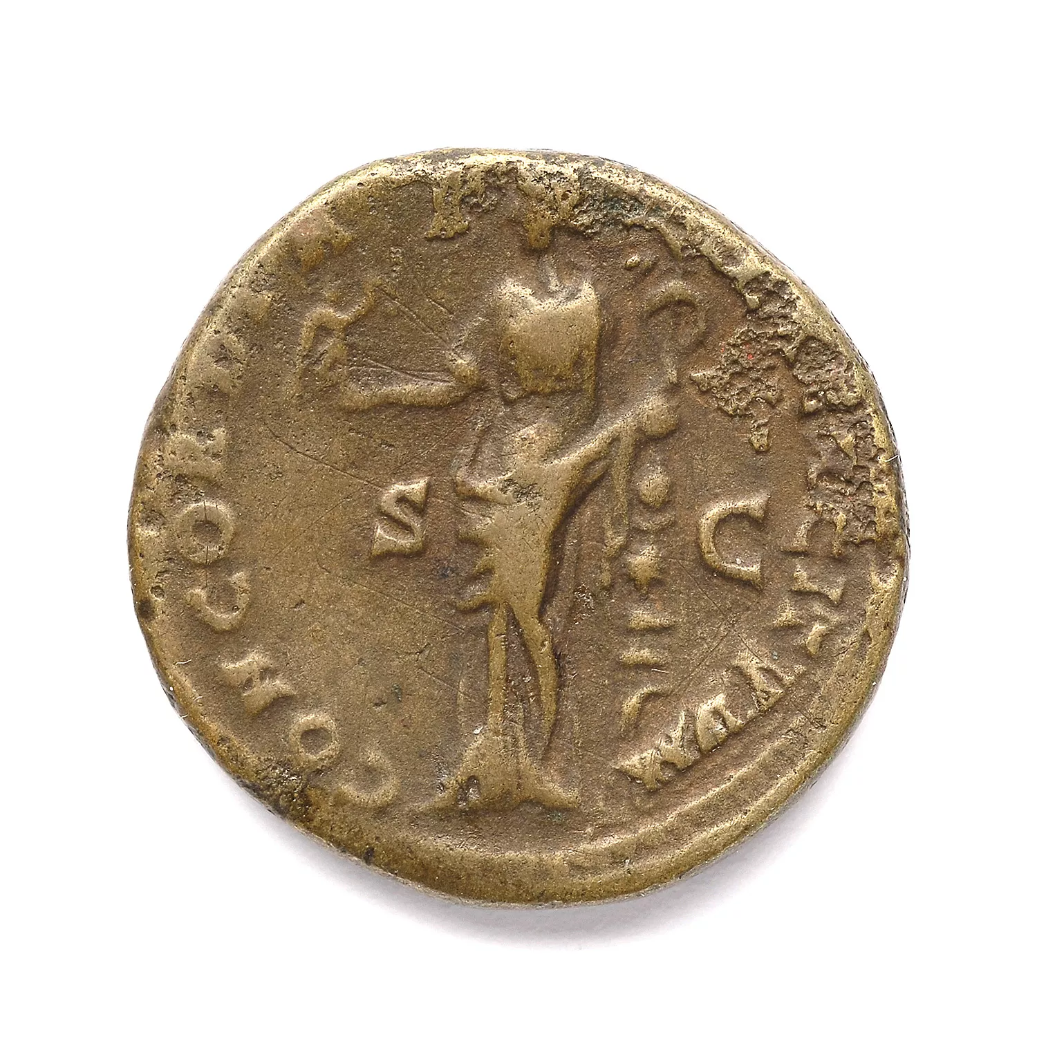 Concordia debout à gauche, tenant une victoire et une enseigne