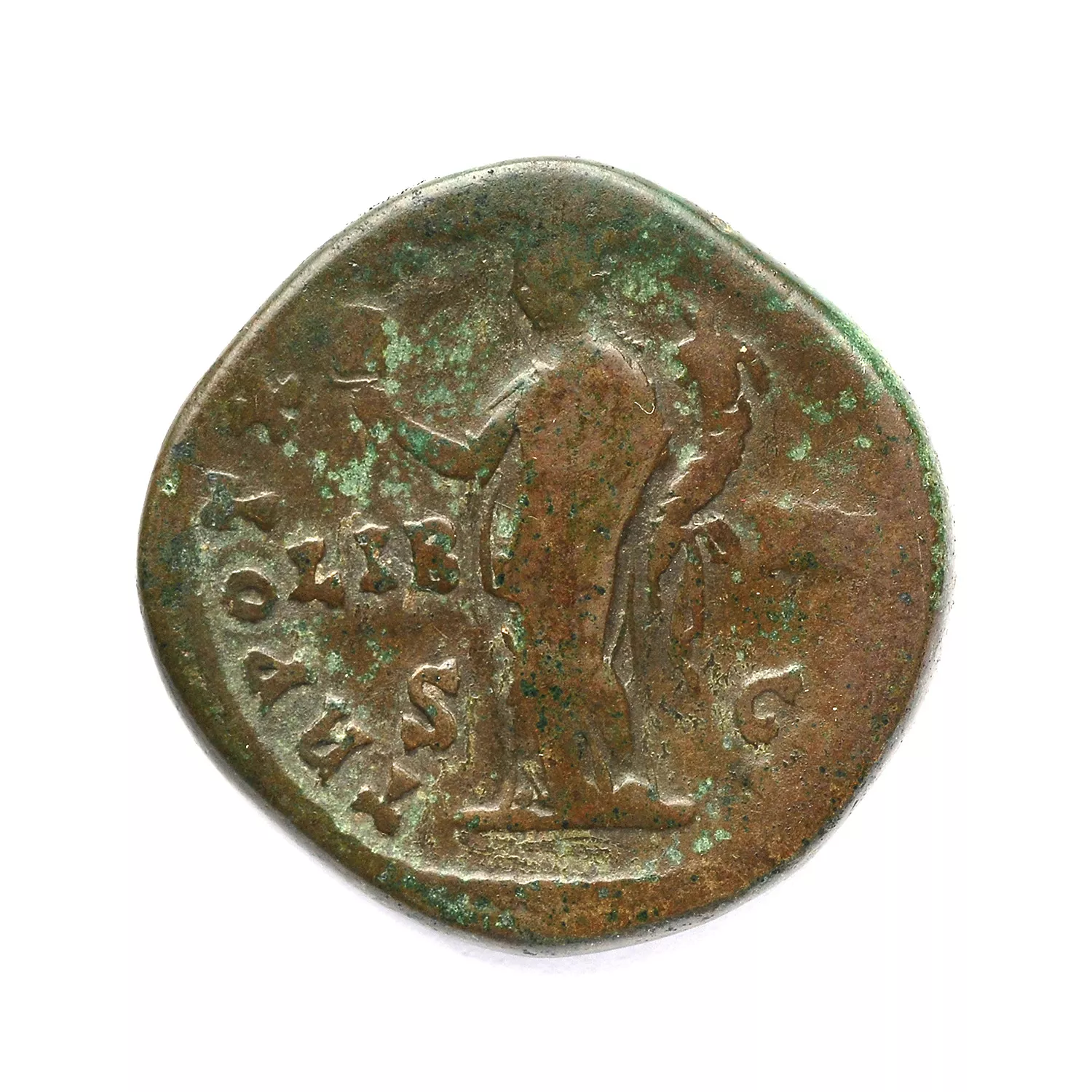 Liberalitas debout à gauche, tenant une tessère et une corne d'abondance