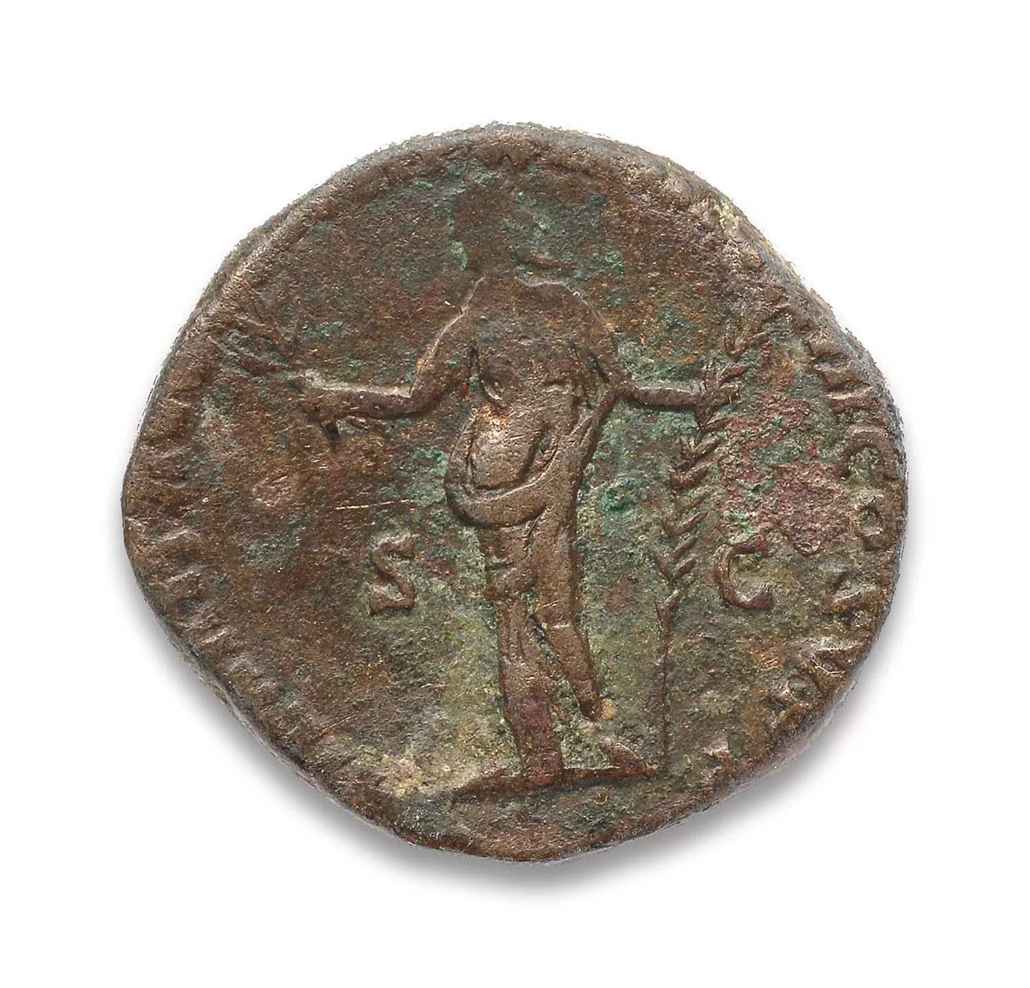 Hilaritas debout à gauche, tenant un rameau et une longue palme