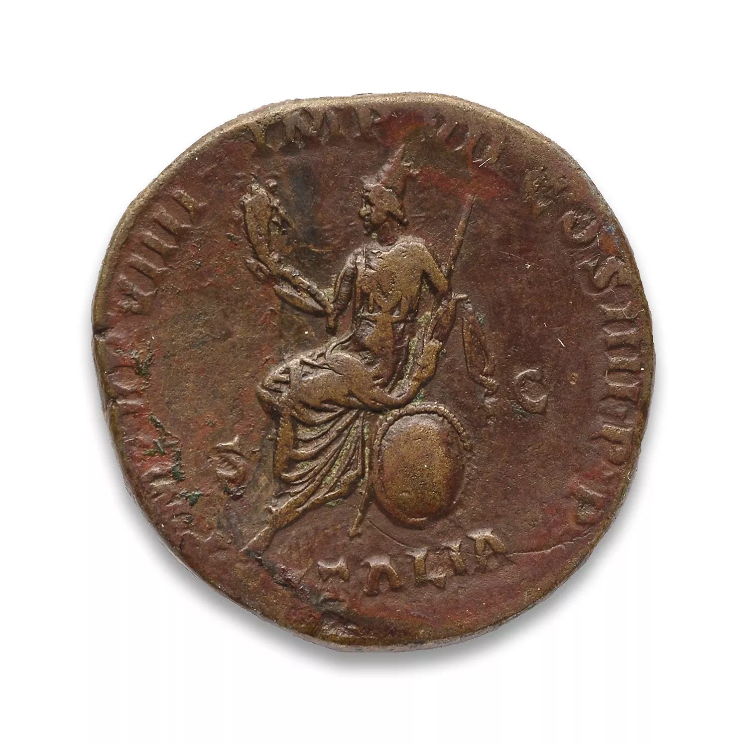 P M TR P VIIII IMP VII COS IIII P P S C // ITALIA