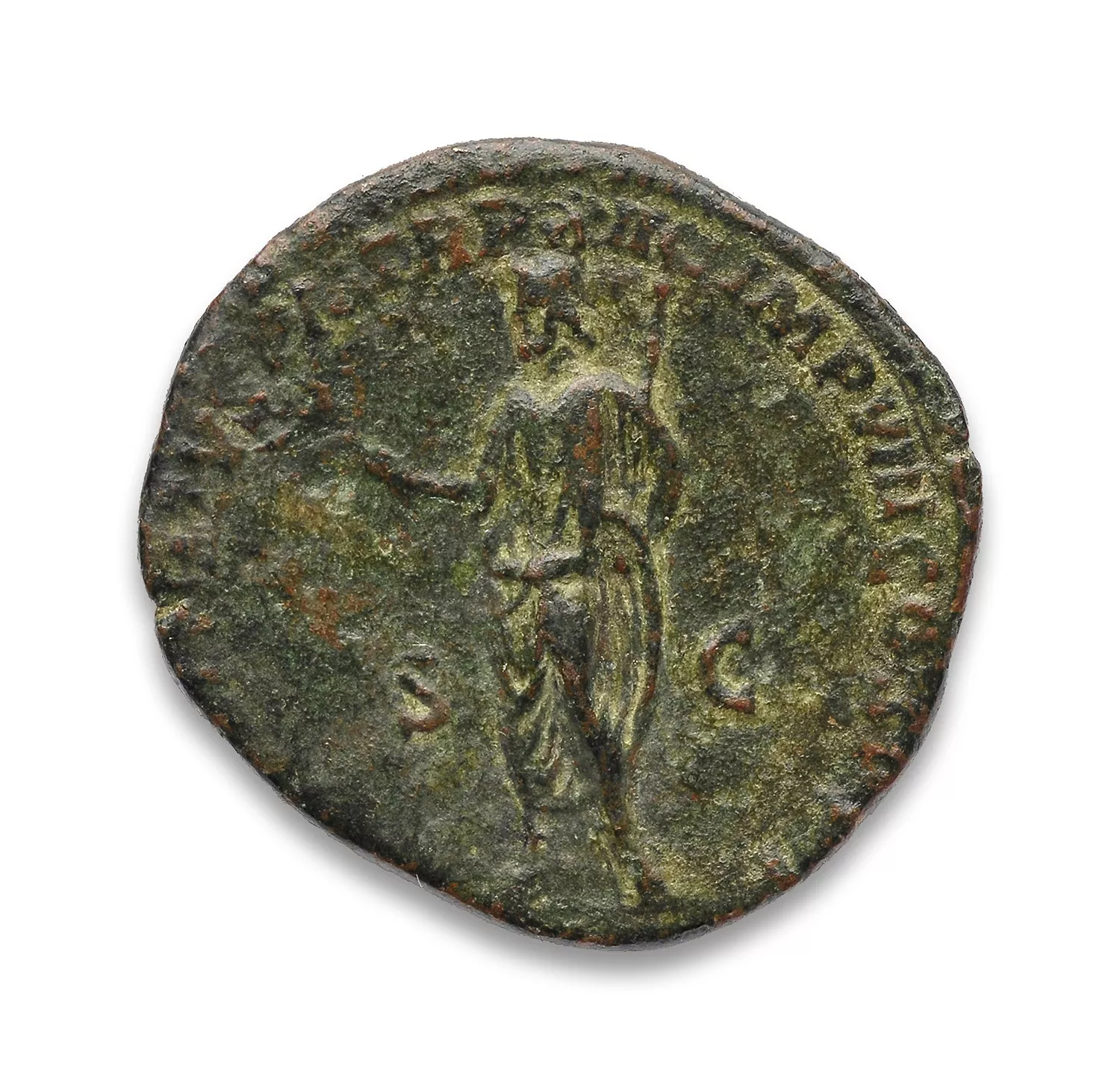 Commode debout à gauche, tenant un rameau et un sceptre