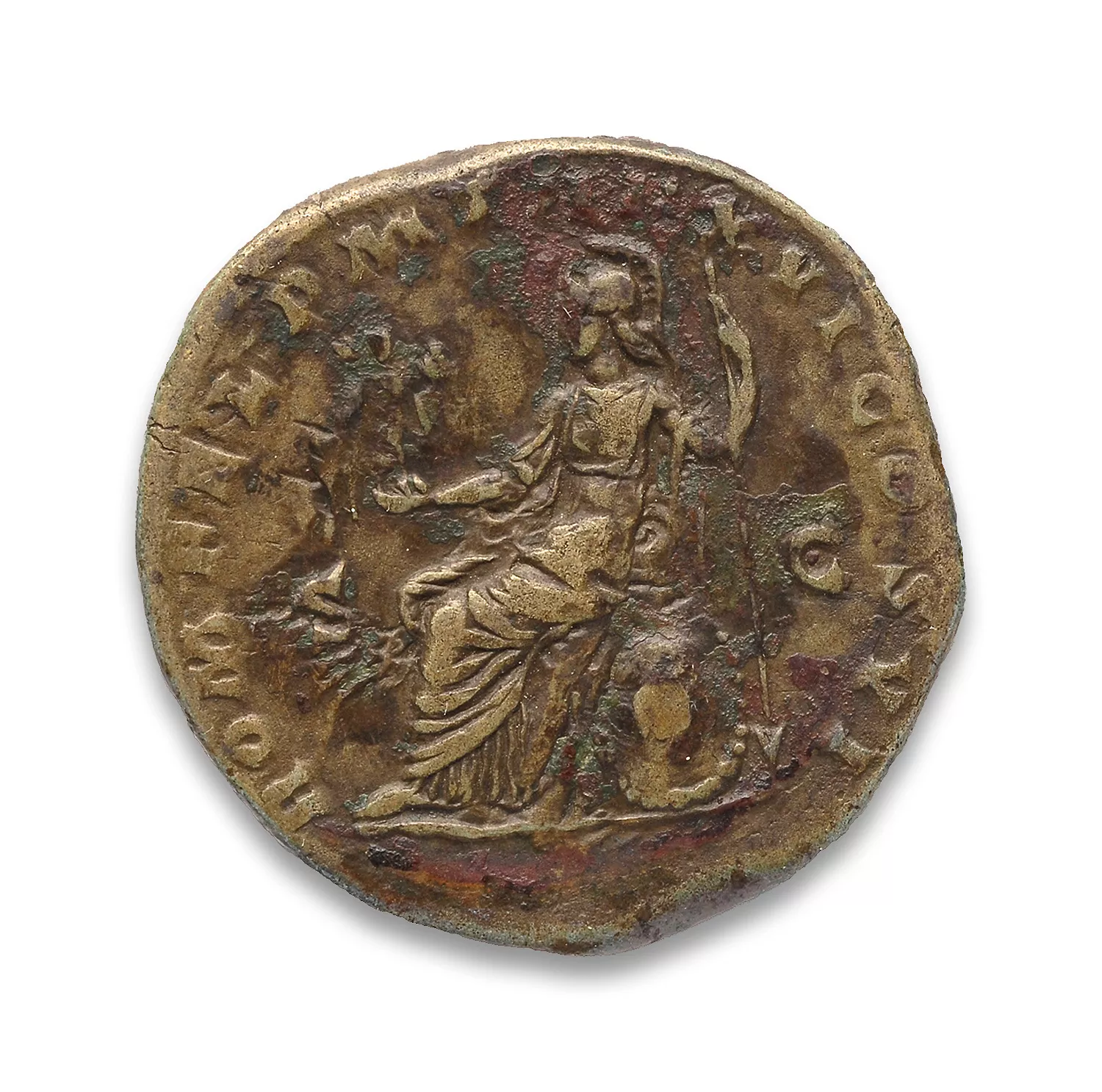 Roma assise à gauche, tenant une victoire et une lance