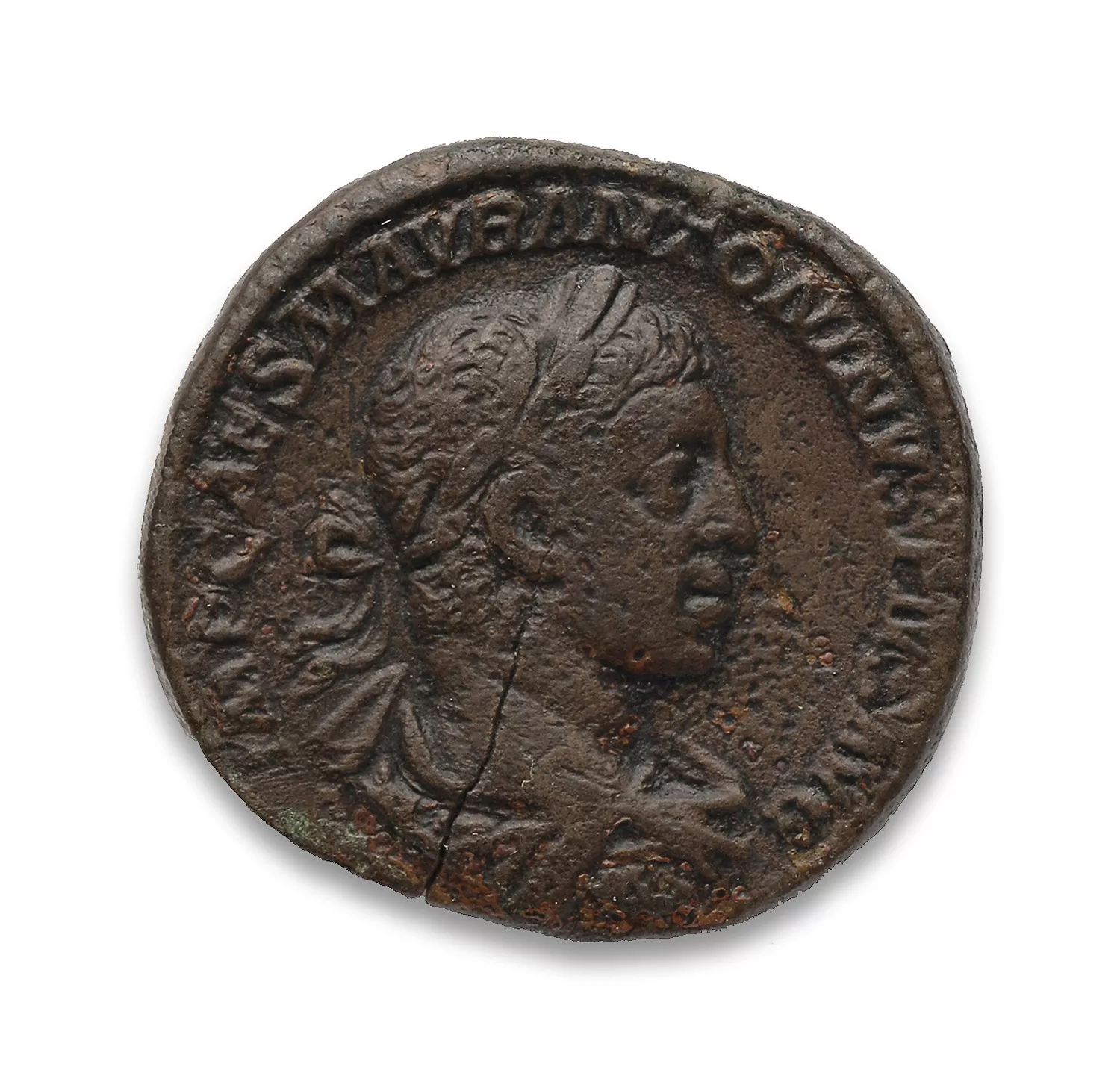 Buste d'Elagabale lauré, drapé et cuirassé vu de trois quarts arrière, à droite