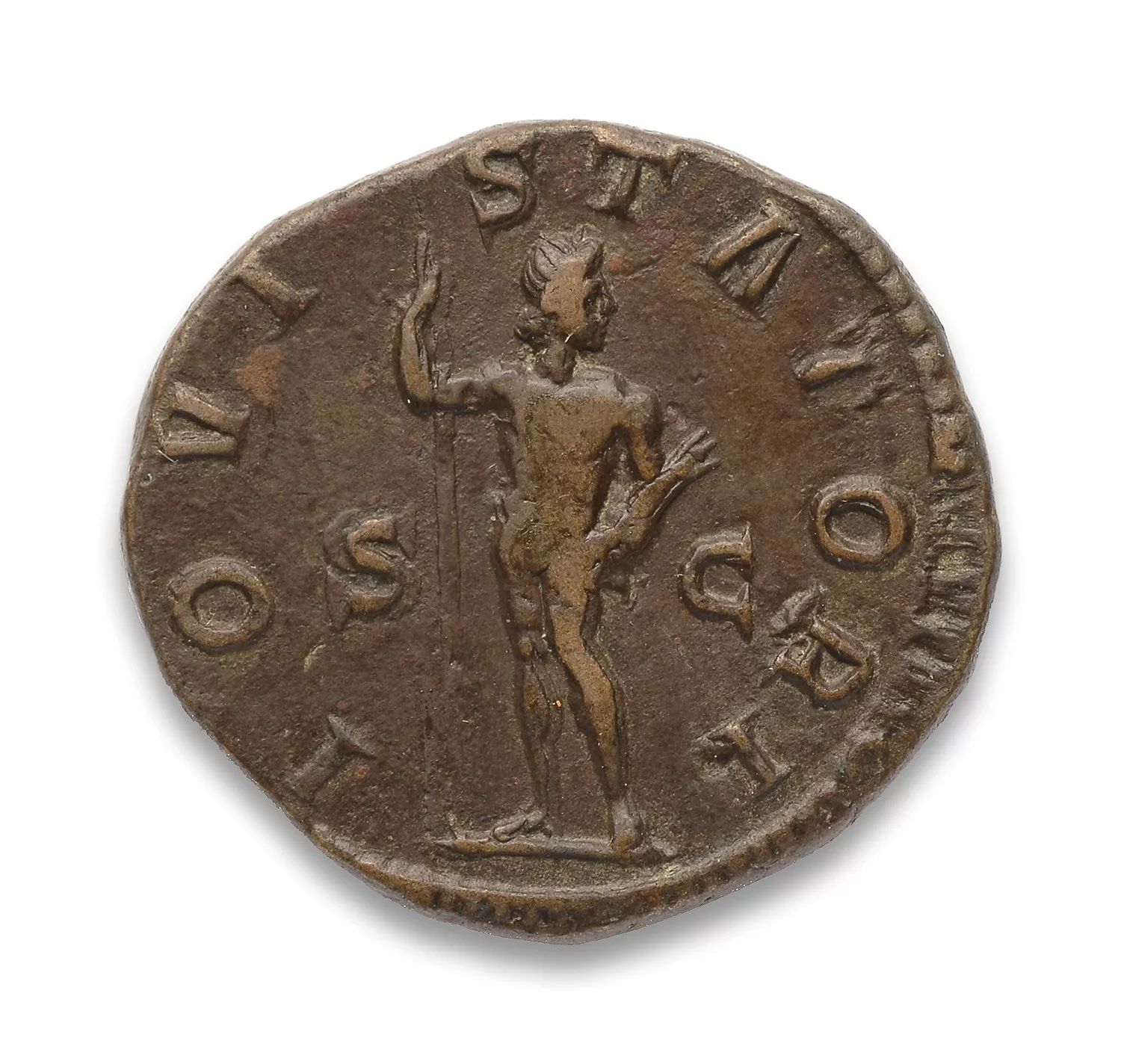 Jupiter debout de face, tête à droite, tenant le foudre et un sceptre