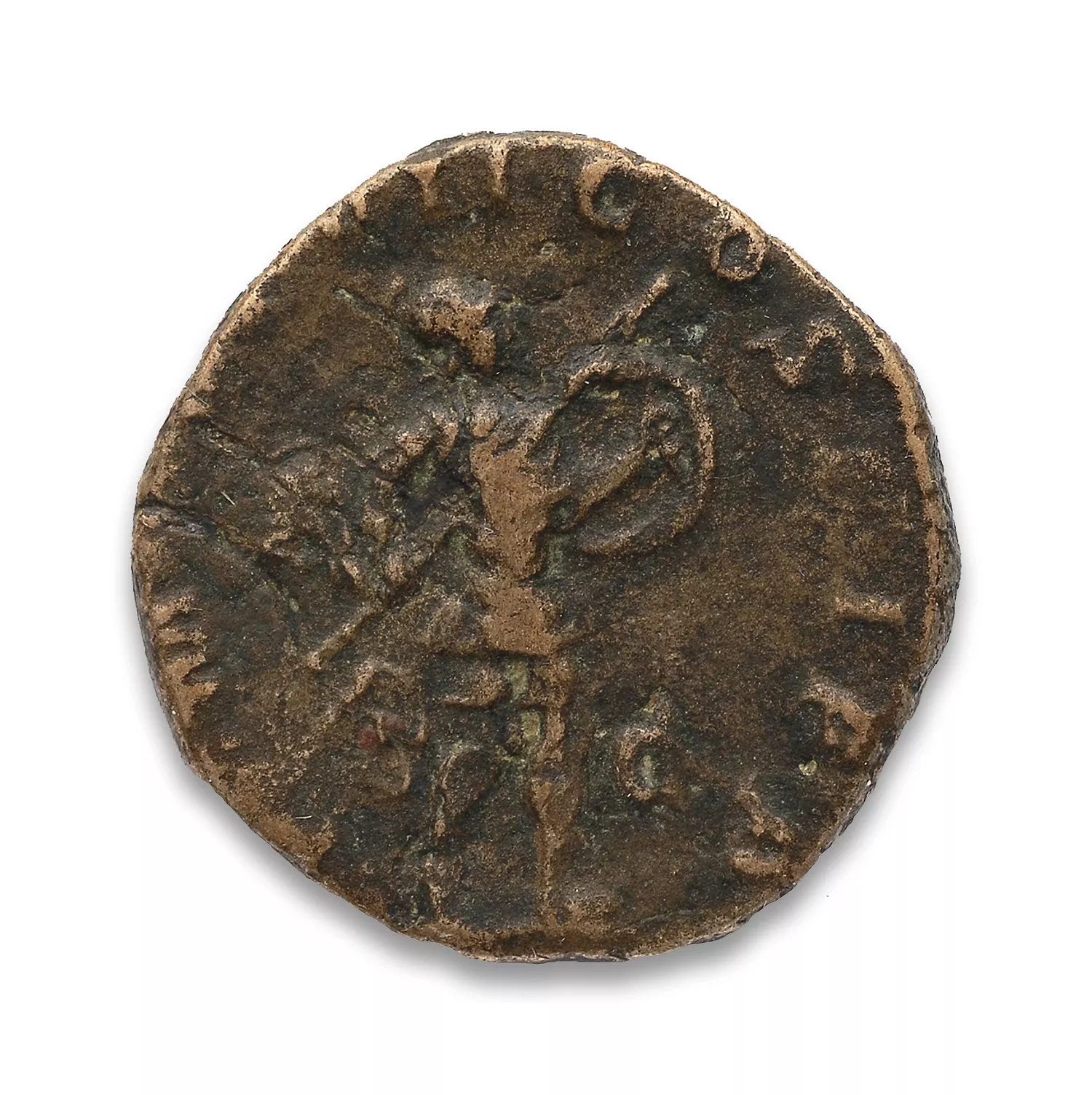 Mars avançant à droite, tenant un bouclier et une lance transversale