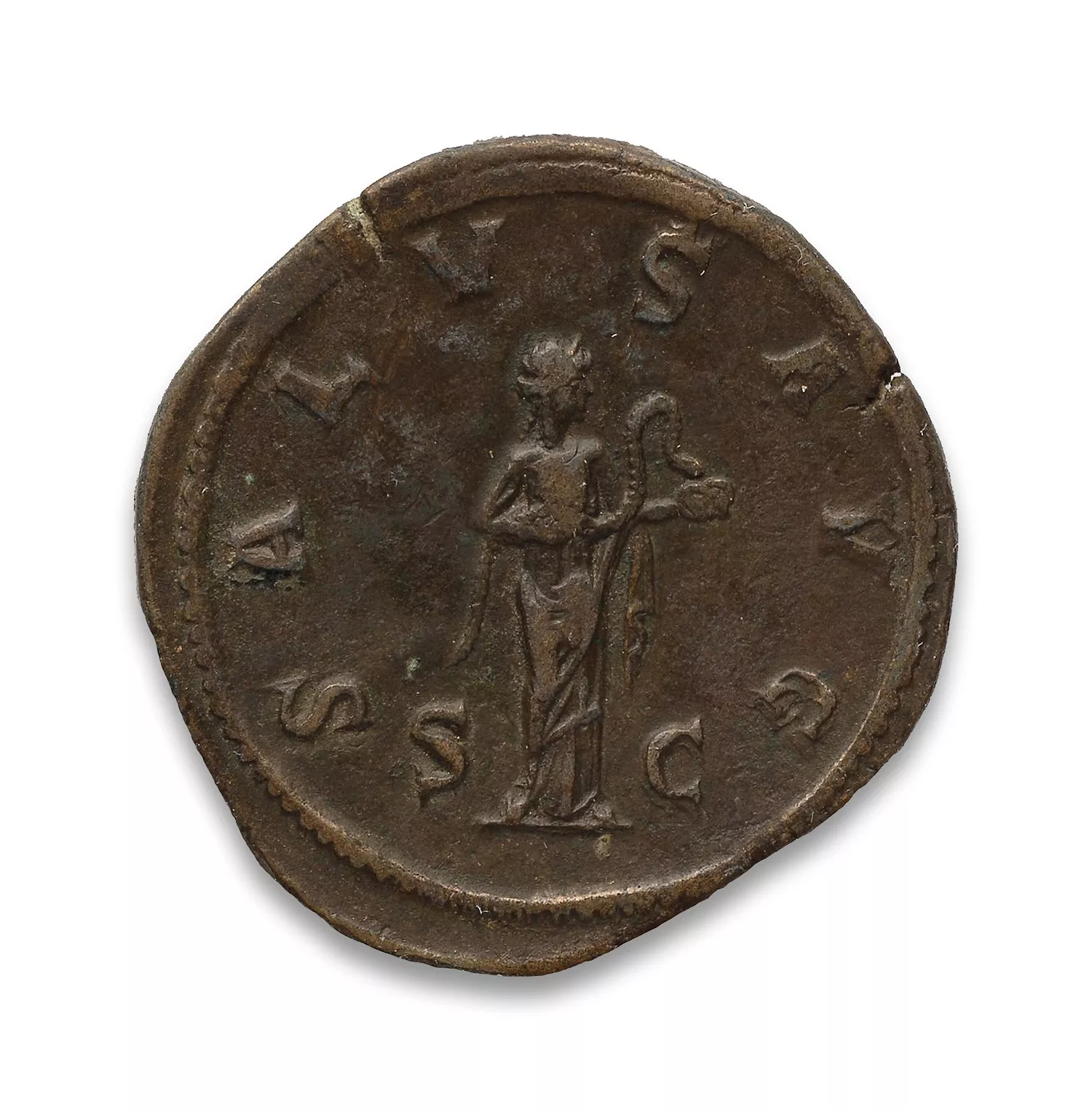 Salus debout à droite, nourrissant un serpent dans ses bras