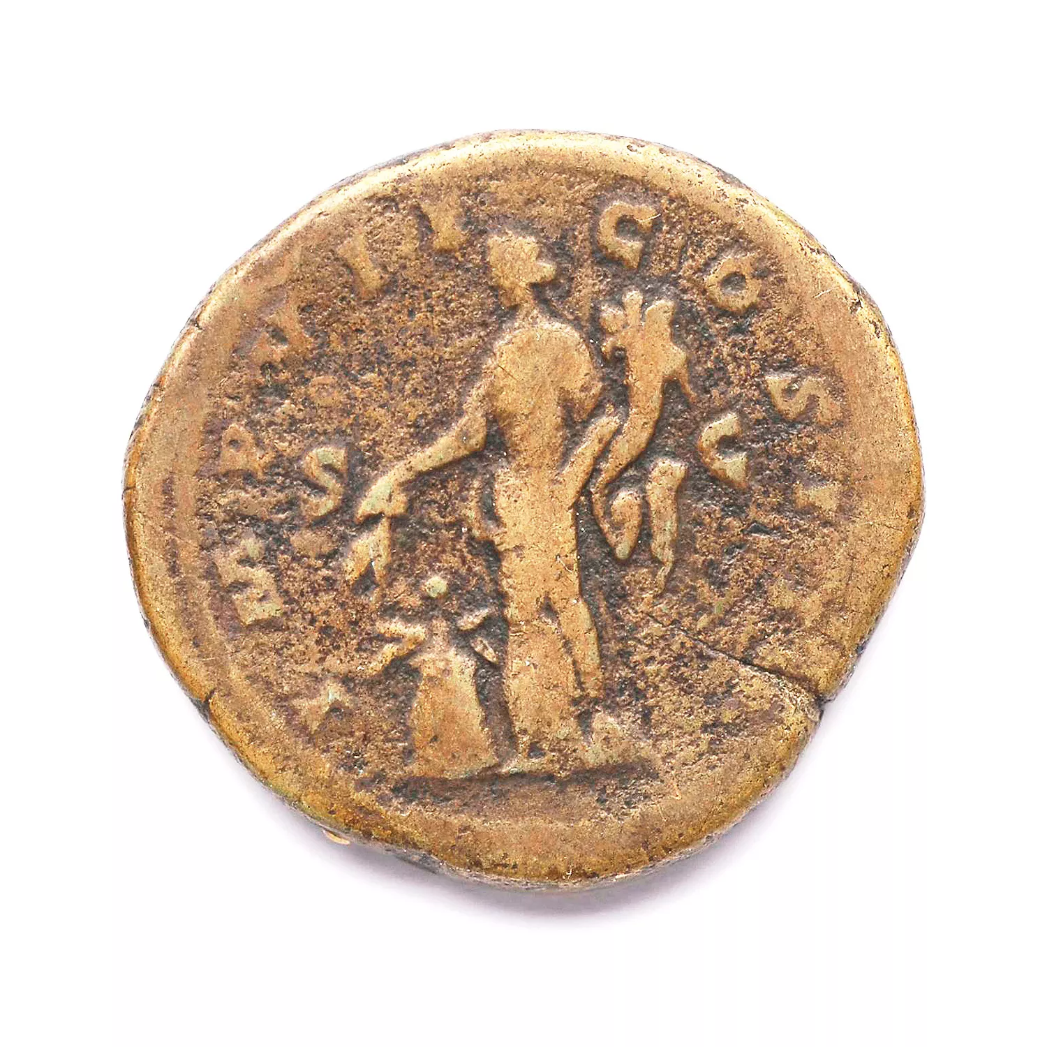 Annona debout à gauche, tenant deux épis de blé au-dessus d'un modius figurant un pavot entouré d'épis de blé, et une corne d'abondance