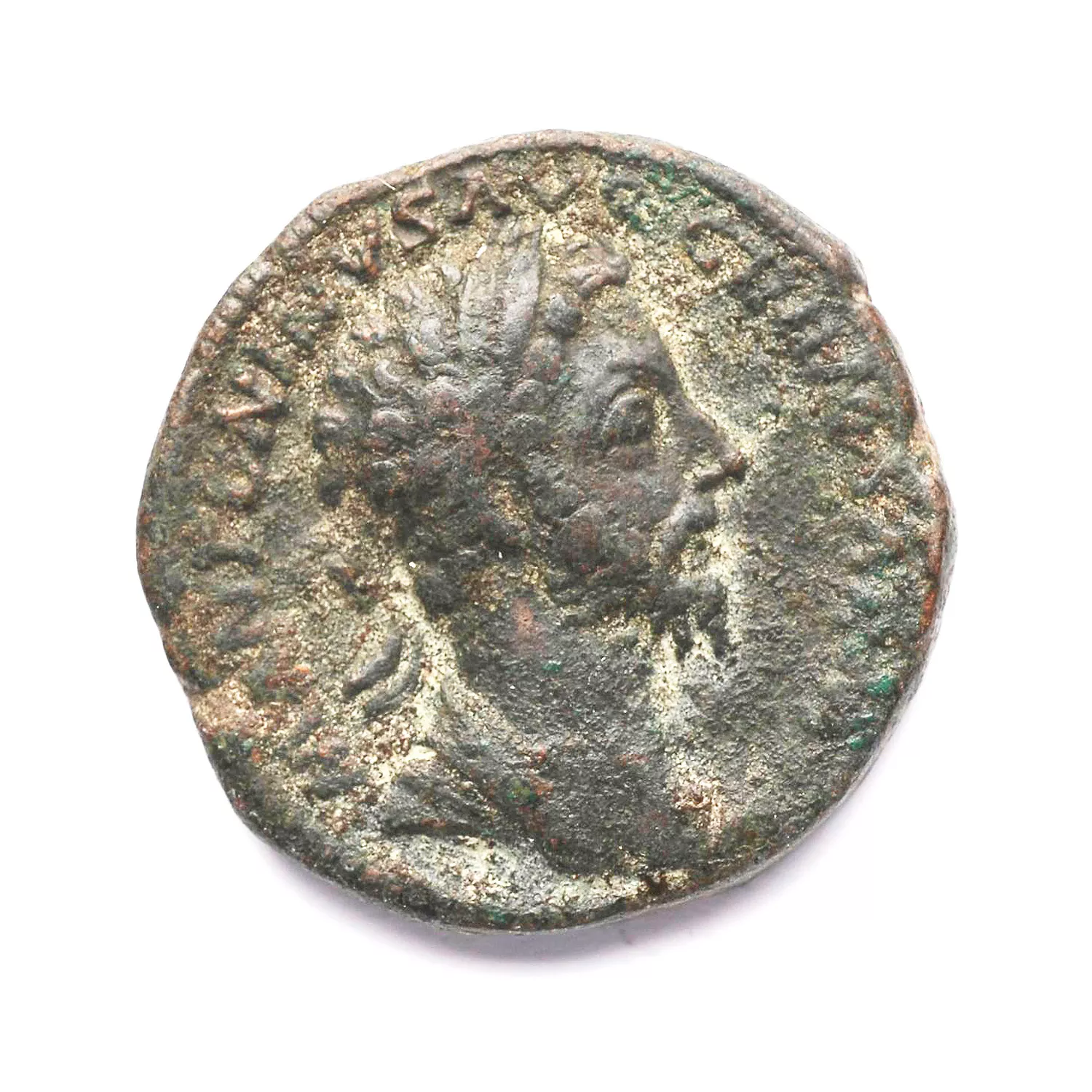 Buste lauré, drapé et cuirassé de Marc Aurèle à droite