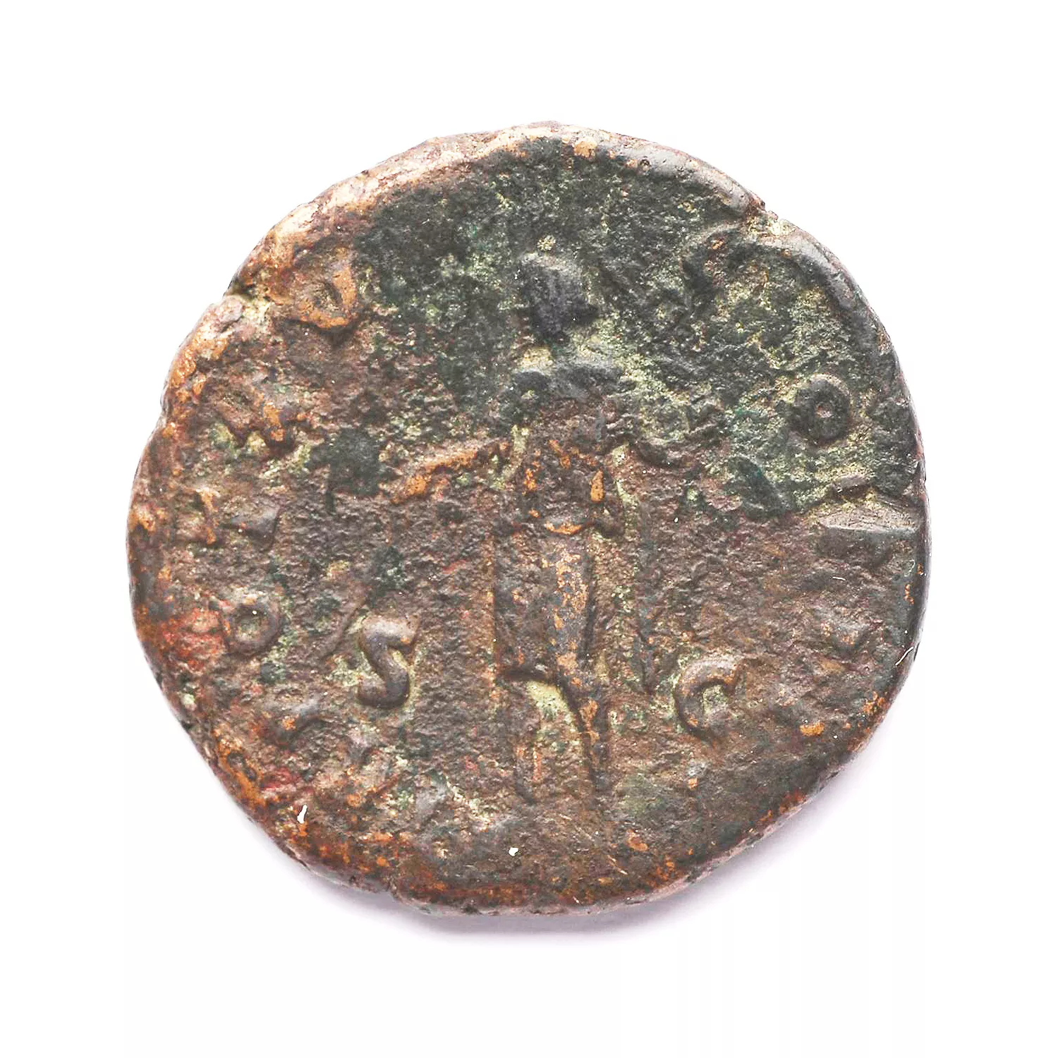 Marc Aurèle (?) debout à gauche, tenant une baguette et un sceptre