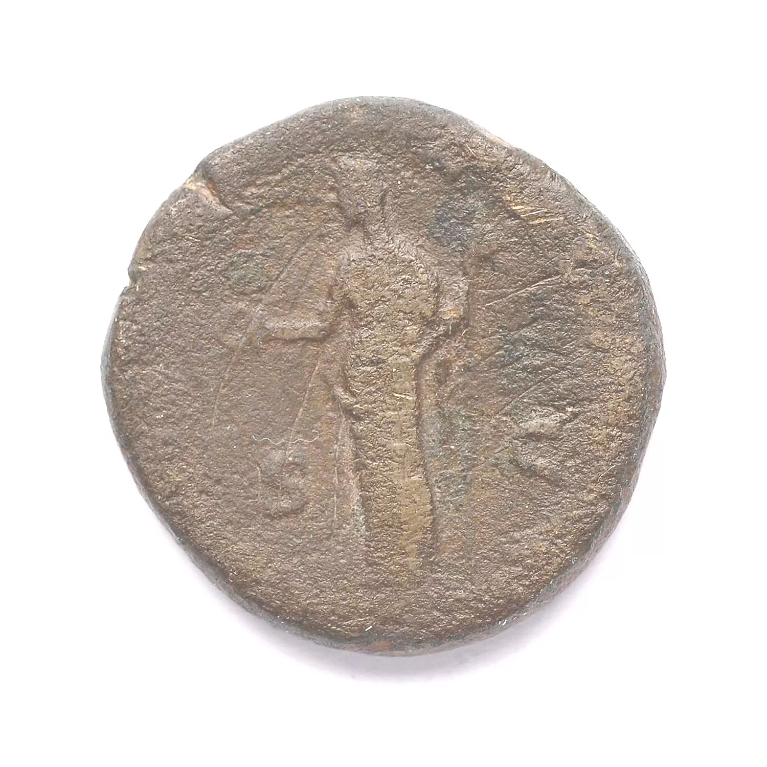 Junon debout à gauche, tenant une patère et un long scepetre droit
