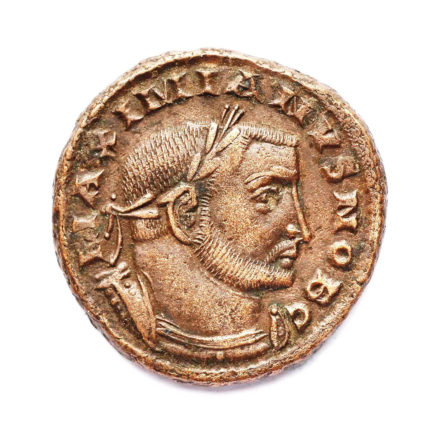 Buste lauré et cuirassé de Dioclétien à droite