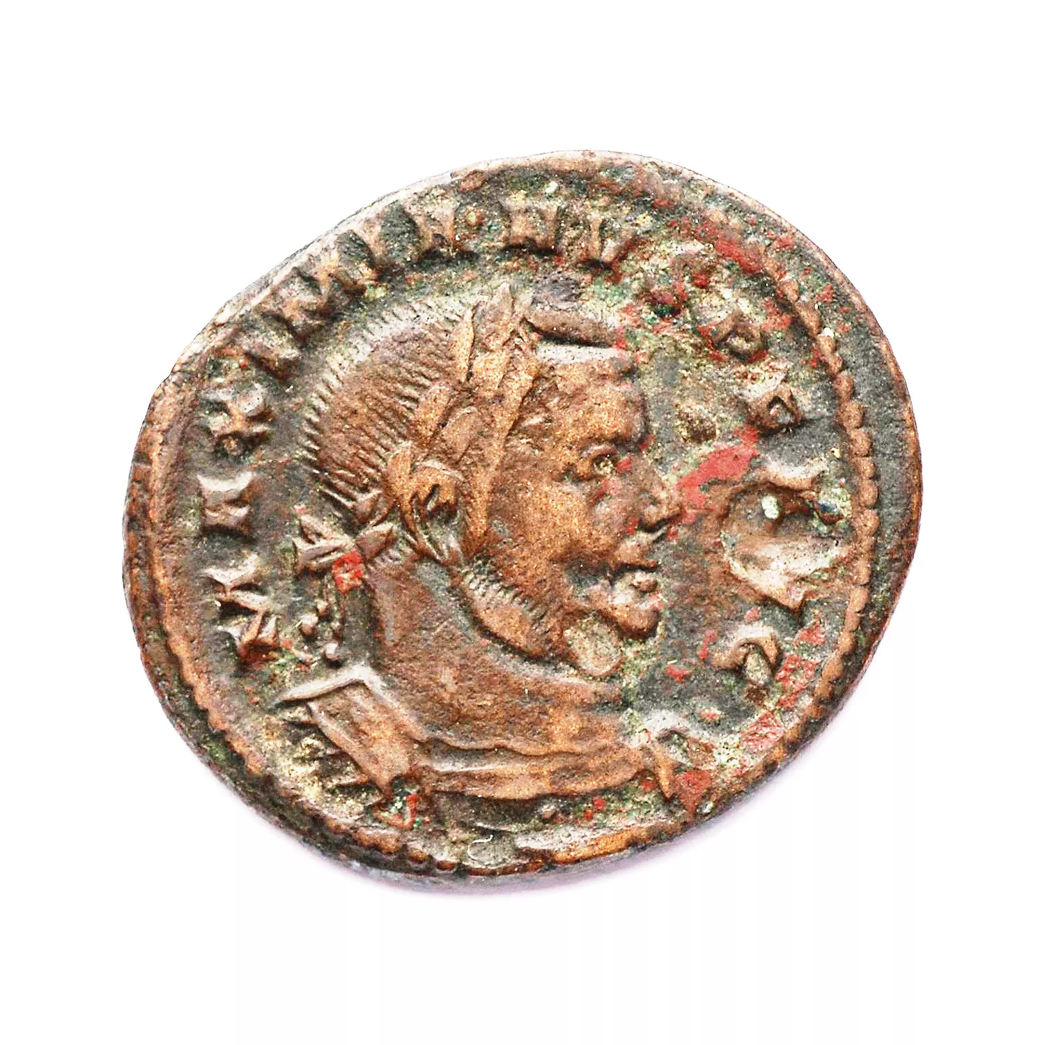Buste lauré et cuirassé de Maximien à droite