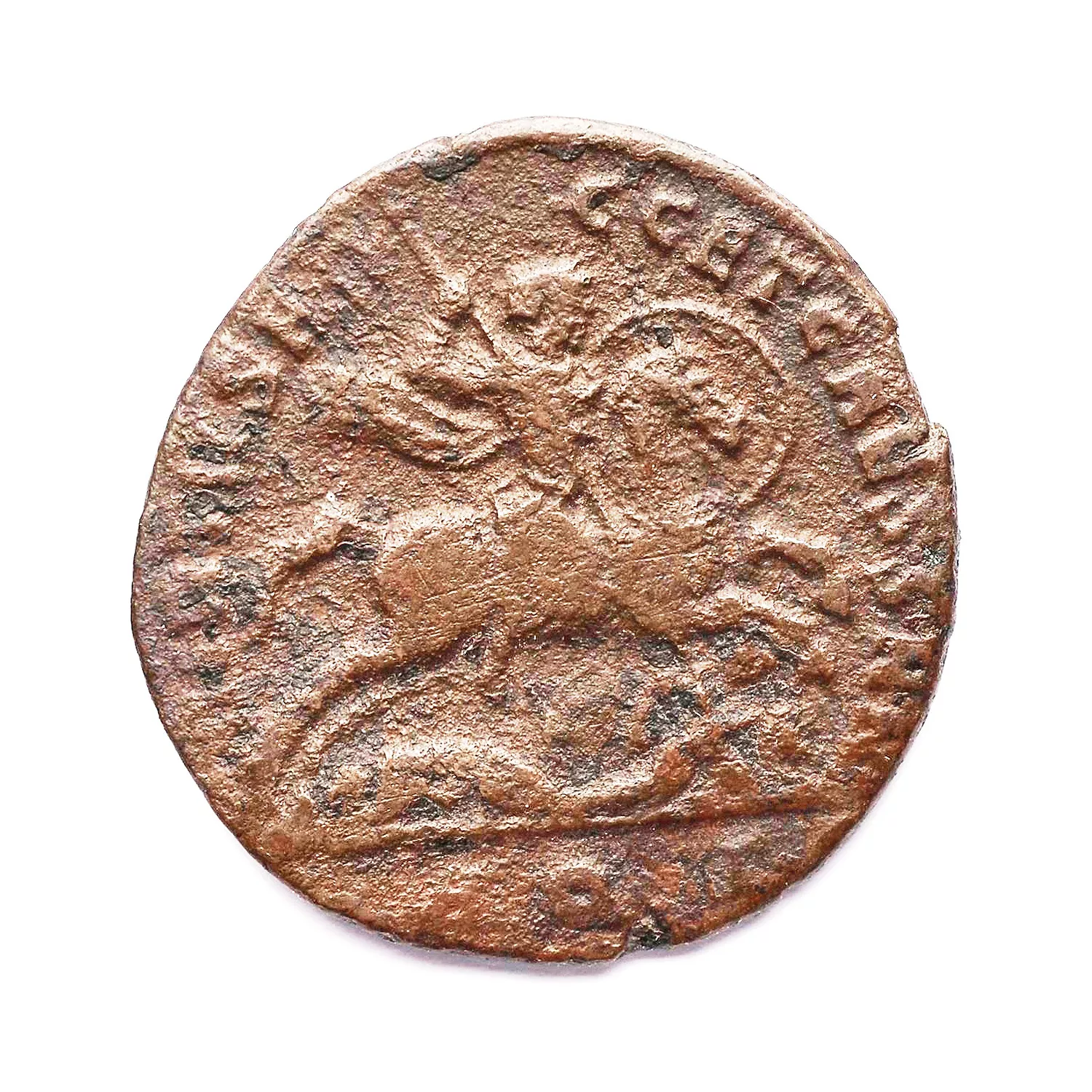 L'empereur à cheval à droite, menaçant de sa lance un ennemi, un autre à terre