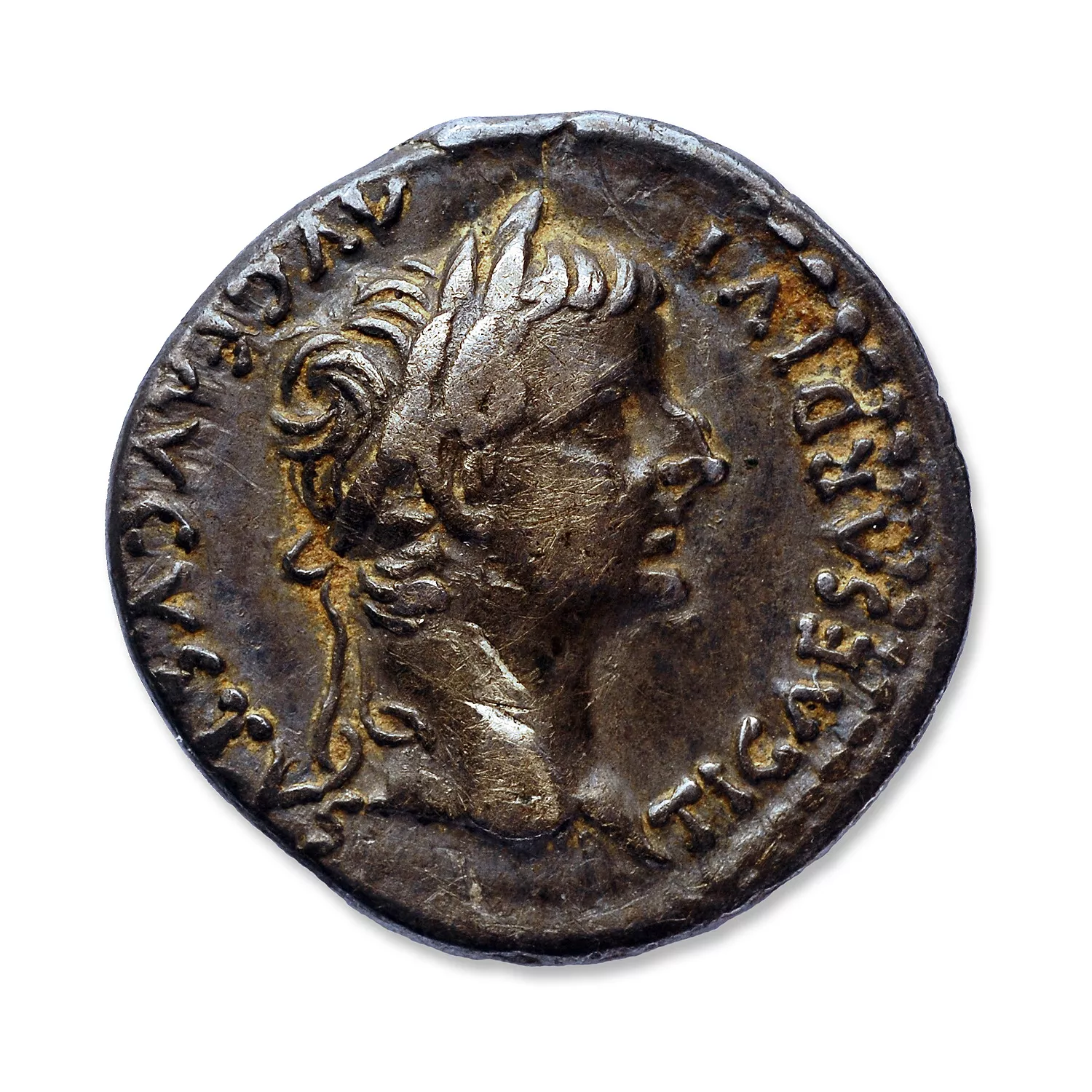 Tête laurée à droite