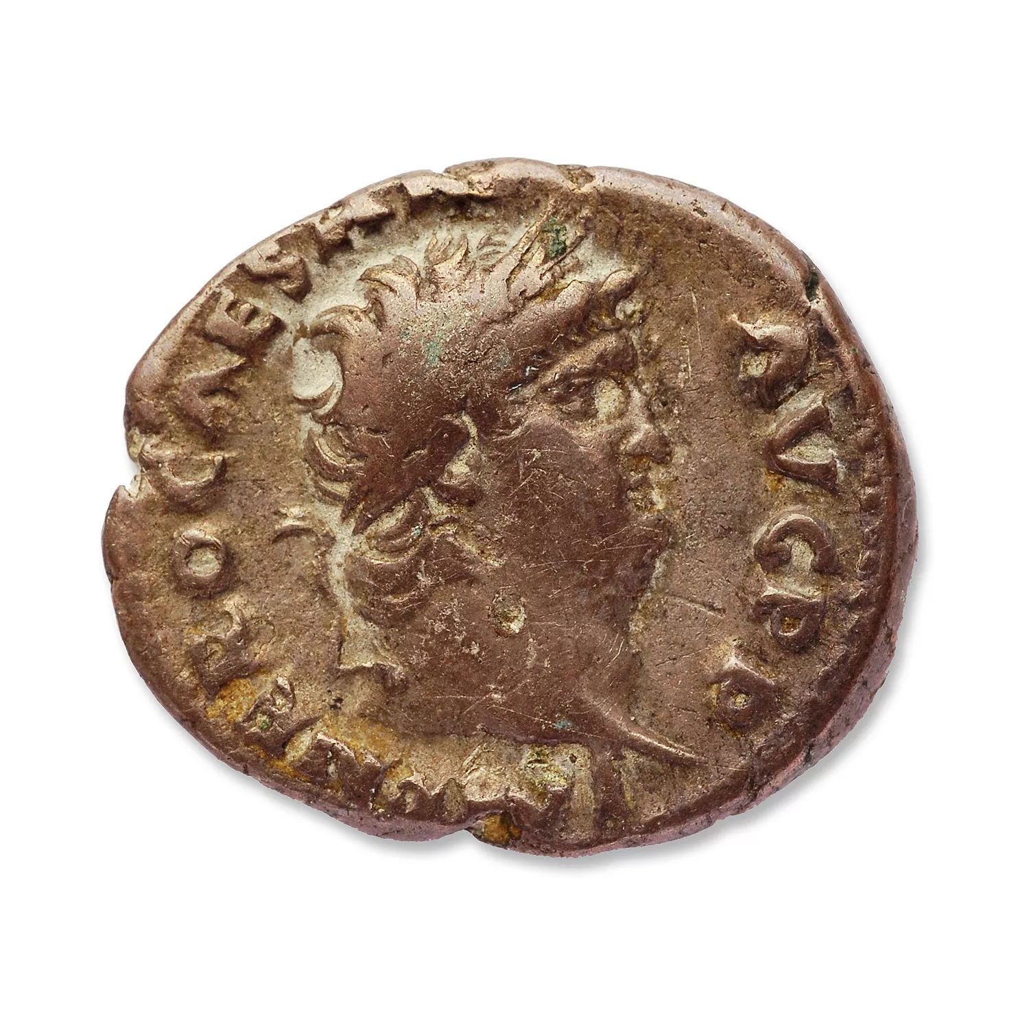 Tête laurée de Néron à droite