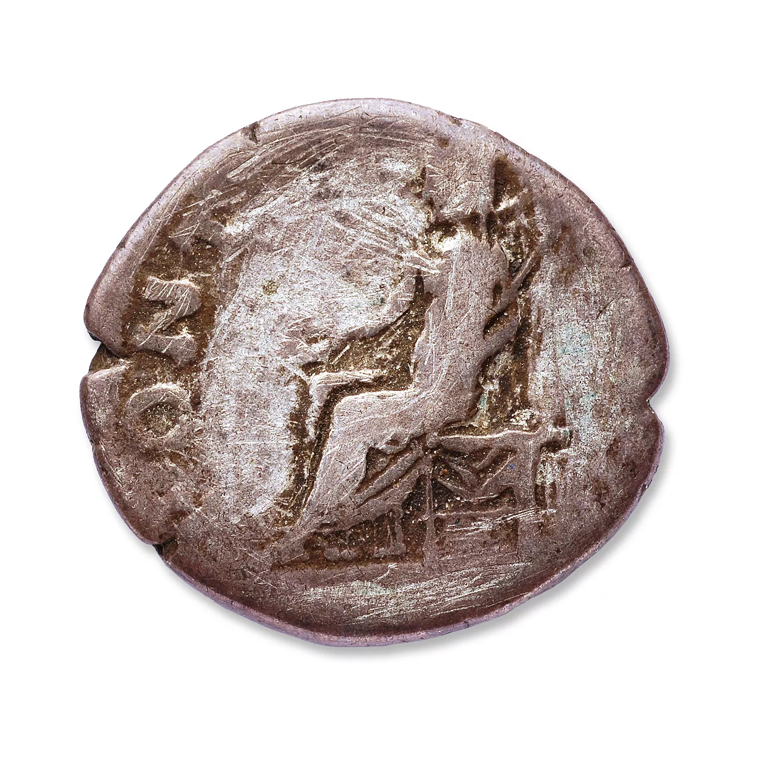 Ce type de revers n'est connu que dans le monnayage d'or (aureus RIC I² 20, exemplaire de Paris) ; il s'agit ici d'une copie avec un aspect de surface doré, voulant imité l'or.