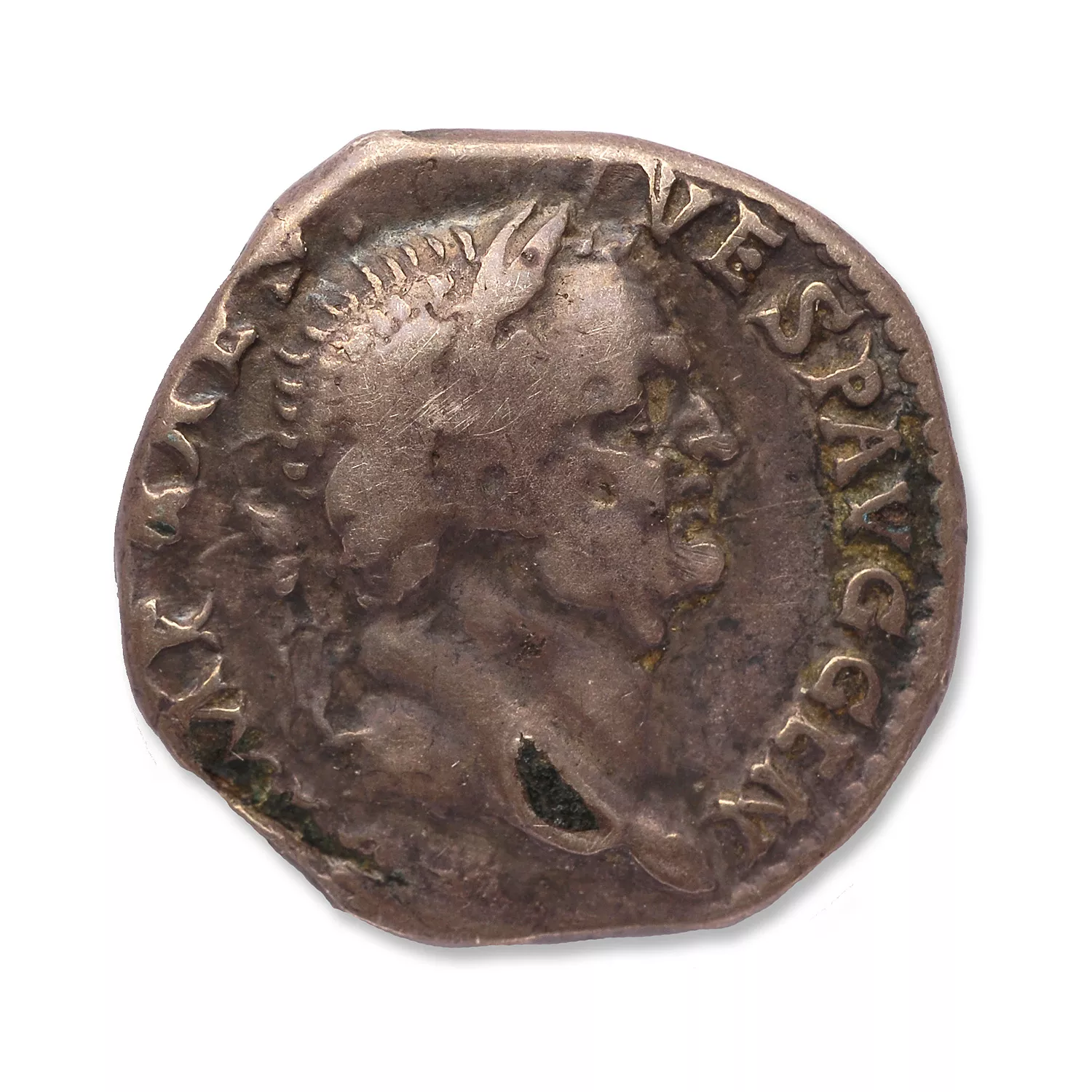 Tête laurée de Vespasien à droite